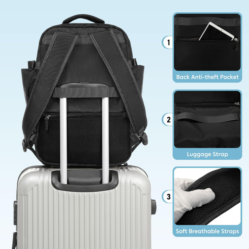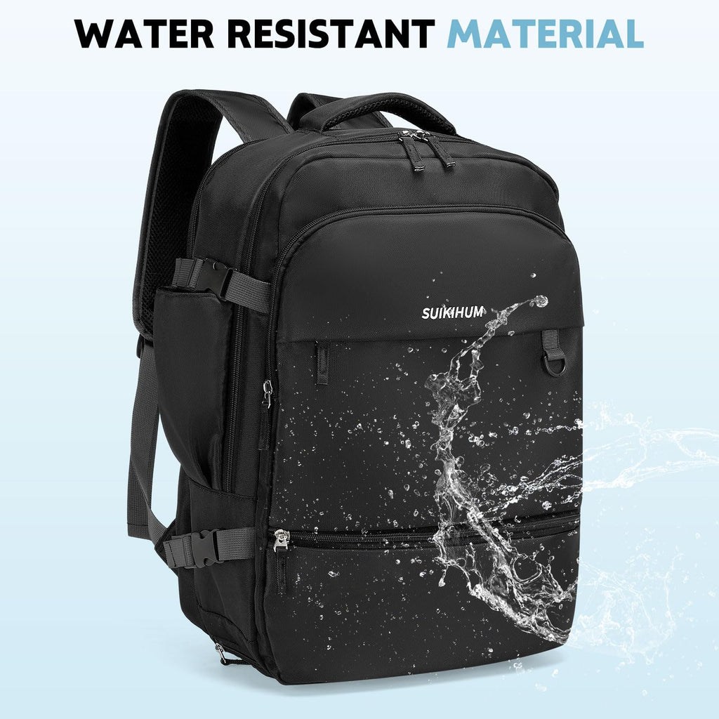 SUIKIHUM Travel Backpack for Men & Women, Carry on Laptop Backpack, Water-Resistant Oxford Fabric, Fits 16" Laptop, Anti-Theft & Luggage Strap, Black