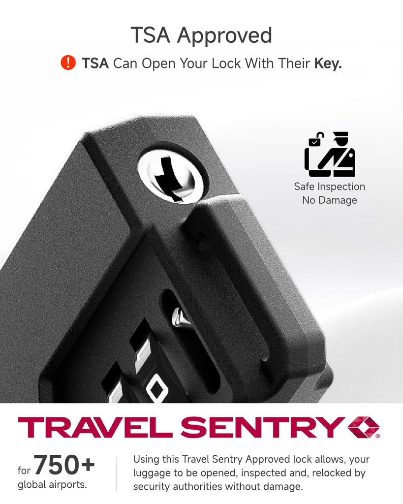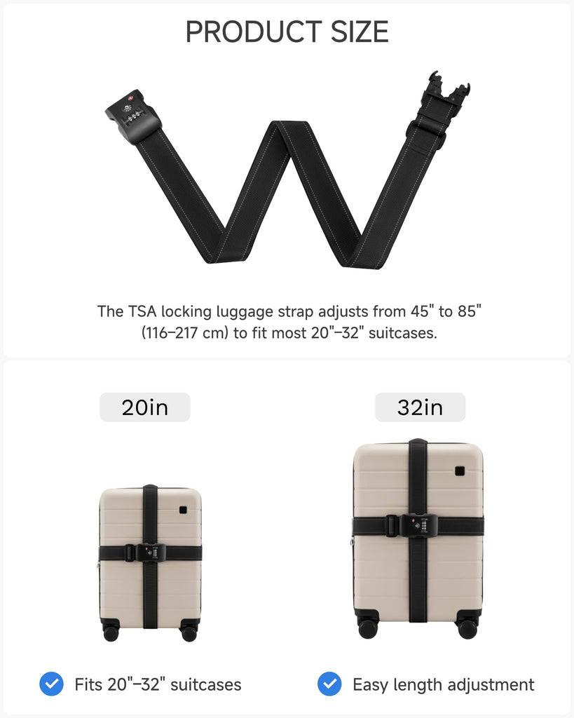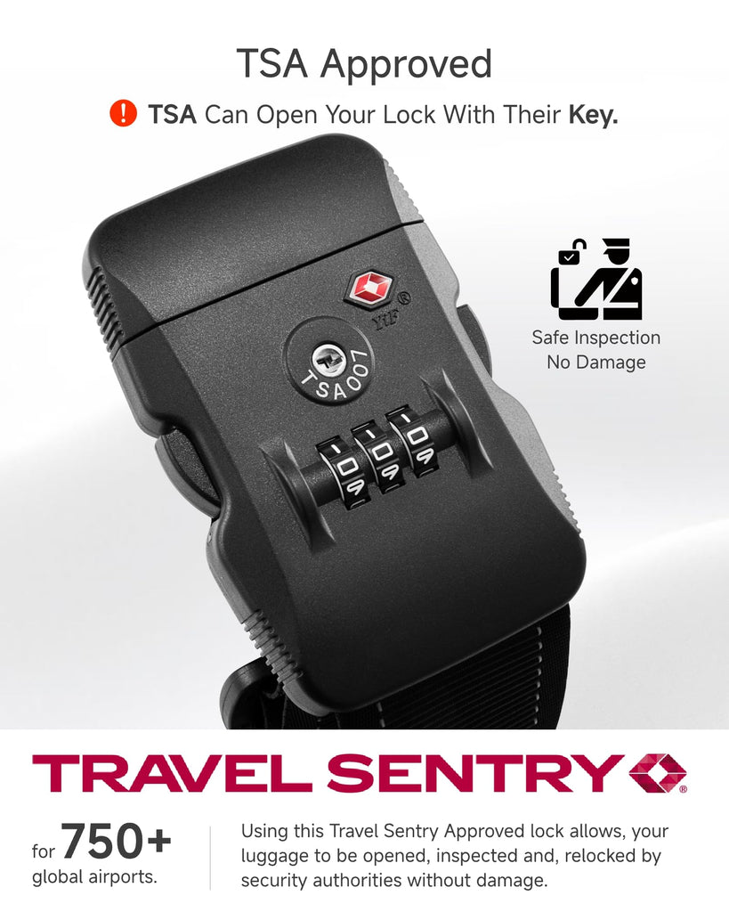 - 【Double Security, Travel with Peace】TSA-approved cable locks and reinforced luggage straps work together to prevent accidental opening and bursting, protecting your privacy and belongings throughout your journey.