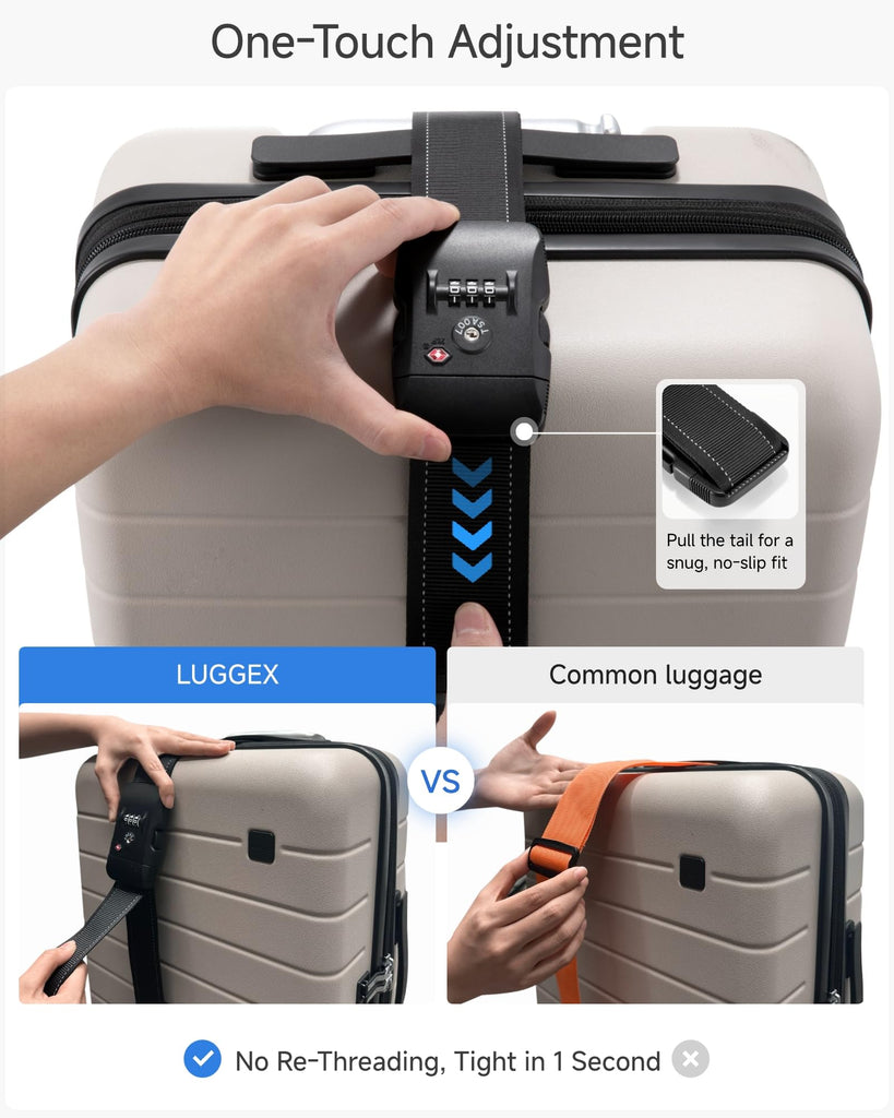 Brand: LUGGEXFeatures: 【Double Security, Travel with Peace】TSA-approved cable locks and reinforced luggage straps work together to prevent accidental opening and bursting, protecting your privacy and belongings throughout your journey. 【Quick & Easy to Use】Lightweight locks with high-contrast dials and one-pull adjustable straps make securing and identifying your luggage fast and...
