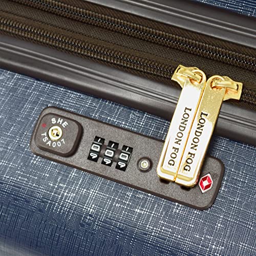 Brand: LONDON FOGColor: BlueFeatures: Durable lightweight PC Composition hardside construction Textured hardside case is scratch & dent resistant 8-recessed spinner wheels with Control Track Self Aligning Technology With the sound of a click, you'll know that the wheels are adjusting into a straight line to help ensure easy maneuvering throughout...