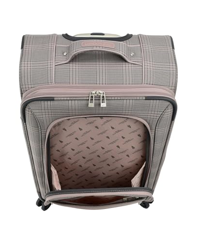 Brand: LONDON FOGColor: Rose CharcoalFeatures: Durable woven jacquard material with faux leather accent trim, 8-recessed spinner wheels with Control Track Self Aligning Technology. With the sound of a click, you'll know that the wheels are adjusting into a straight line to help ensure easy maneuvering throughout your travels, Hyperlight injection...