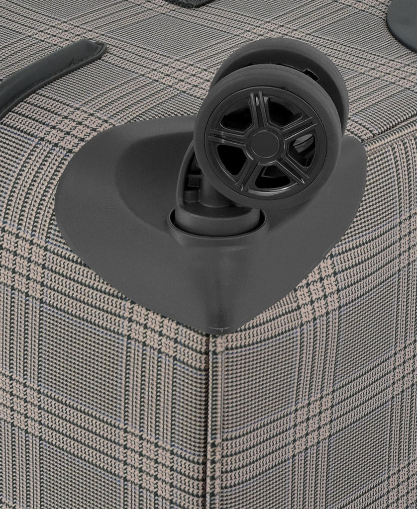 • Durable woven jacquard material with faux leather accent trim, 8-recessed spinner wheels with Control Track Self Aligning Technology. With the sound of a click, you'll know that the wheels are adjusting into a straight line to help ensure easy maneuvering throughout your travels, Hyperlight injection molded chassis for superior strengthLocking trolley handle with aluminum tubes for lightweight & strength