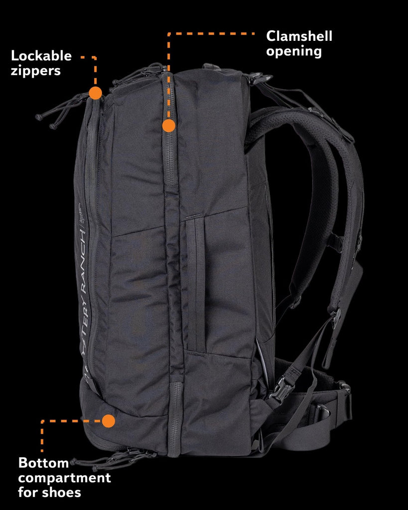 Mystery Ranch Mission Rover 45 Backpack – Duffel Bag with Side Handle, Lockable Zippers & Padded Laptop Sleeve – Black