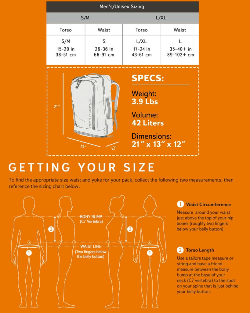 Brand: Mystery RanchColor: BlackFeatures: Built for Life on the Move: Our Mission Rover 45 is built for people who move often and need gear that moves with them; this 42 liter bag measures 21” by 13” by 12” with a weight of 3.9 lbs Optimal Storage: The clamshell opening makes...