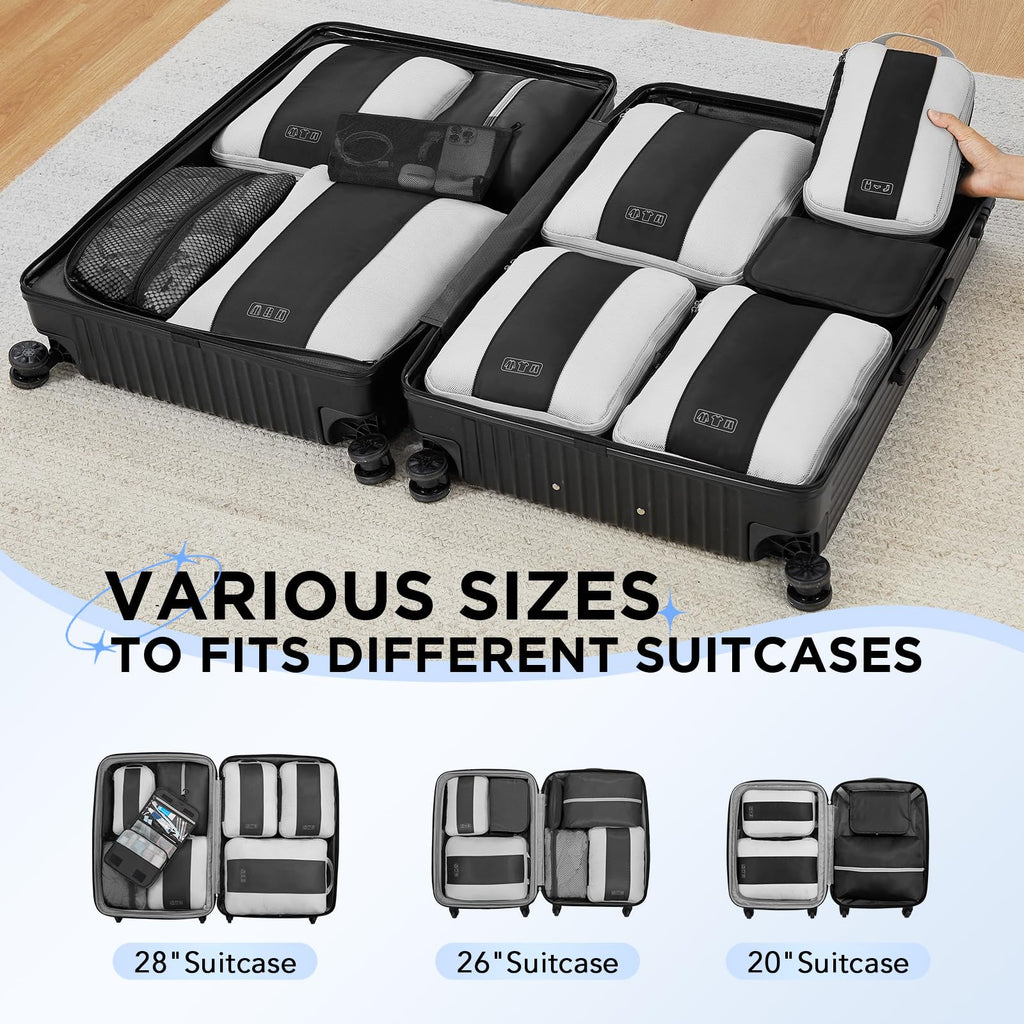 - Ready for Any Adventure - Whether you’re heading out for a weekend getaway, a business conference, or a month-long backpacking trip, This high-capacity 10-piece compression cet seamlessly accommodates 20-32-inch suitcases of all types. We’re here to ensure you travel smarter, pack better, and enjoy every moment of your journey with peace of mind.