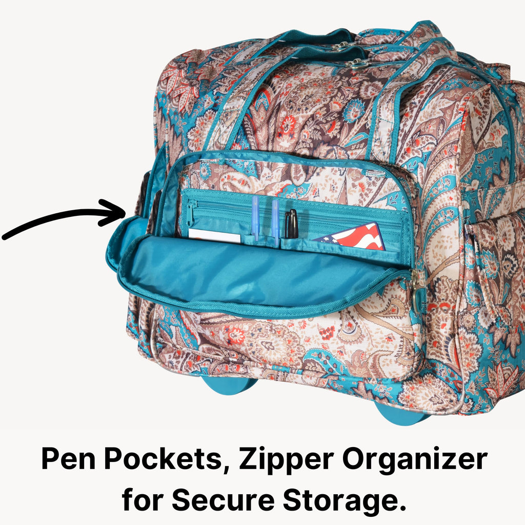 Brand: Olympia U.S.A.Color: Blue PaisleyFeatures: OVERNIGHT ROLLING SUITCASE – This fashionable overnight rolling suitcase is the perfect travel bag you’ll want to take with you anywhere you go. Made with high-quality material that is lightweight for carry on and durable for long-lasting use, this luggage carrier with retractable handle offers...