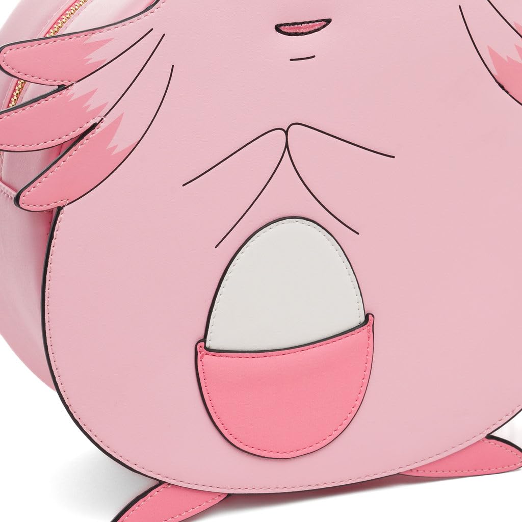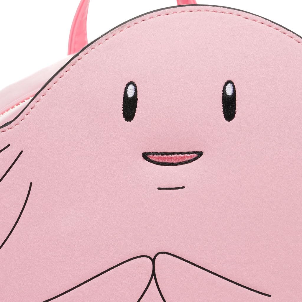 • This faux leather Loungefly mini backpack features the lovable Chansey in an irresistibly adorable design. The front showcases its signature round body, cheerful embroidered face, and iconic egg pouch, symbolizing its caring nature as it shares eggs to heal others.