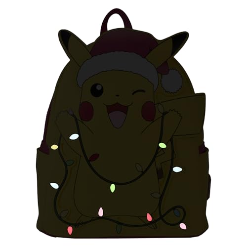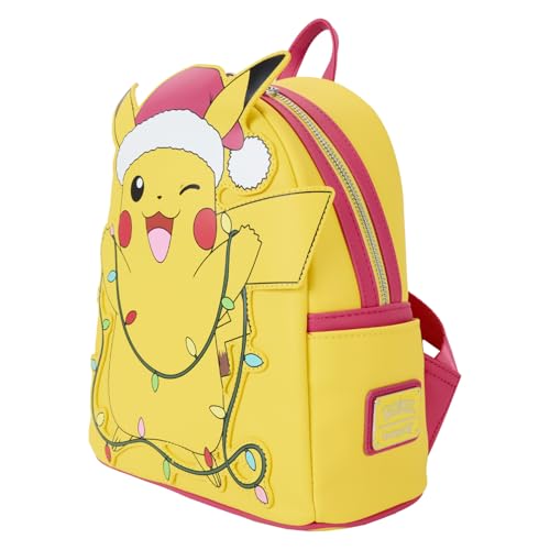 Warm winter wishes for a bright and shining holiday! Pikachu is ready to join your festivities as he appears on this mini backpack. Dressed in a red hat, he holds a strand of colorful lights that illuminate with light-up features. Add this accessory to your merrymaking fun for a cheerful twist on winter traditions!