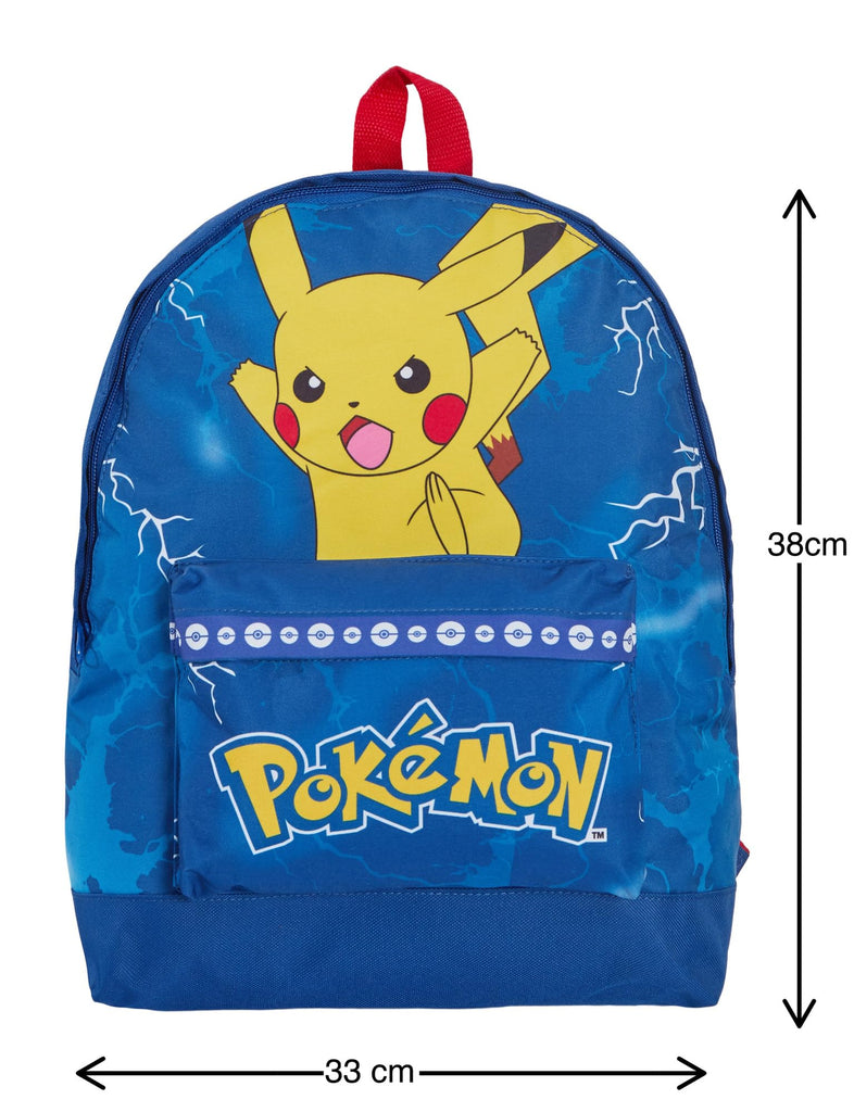 - Officially licensed. We have worked directly with the makers of Pokémon to produce this classic authentic bag set. We have included high definition image of Pikachu in action, featuring new season official artwork. The blue thunder background features Pikachu's lighting bolts with the official Pokémon logo. The pencil case and lunch bag are designed with matching graphics. A great, classic and timeless design loved by all Pokémon fans young and older.