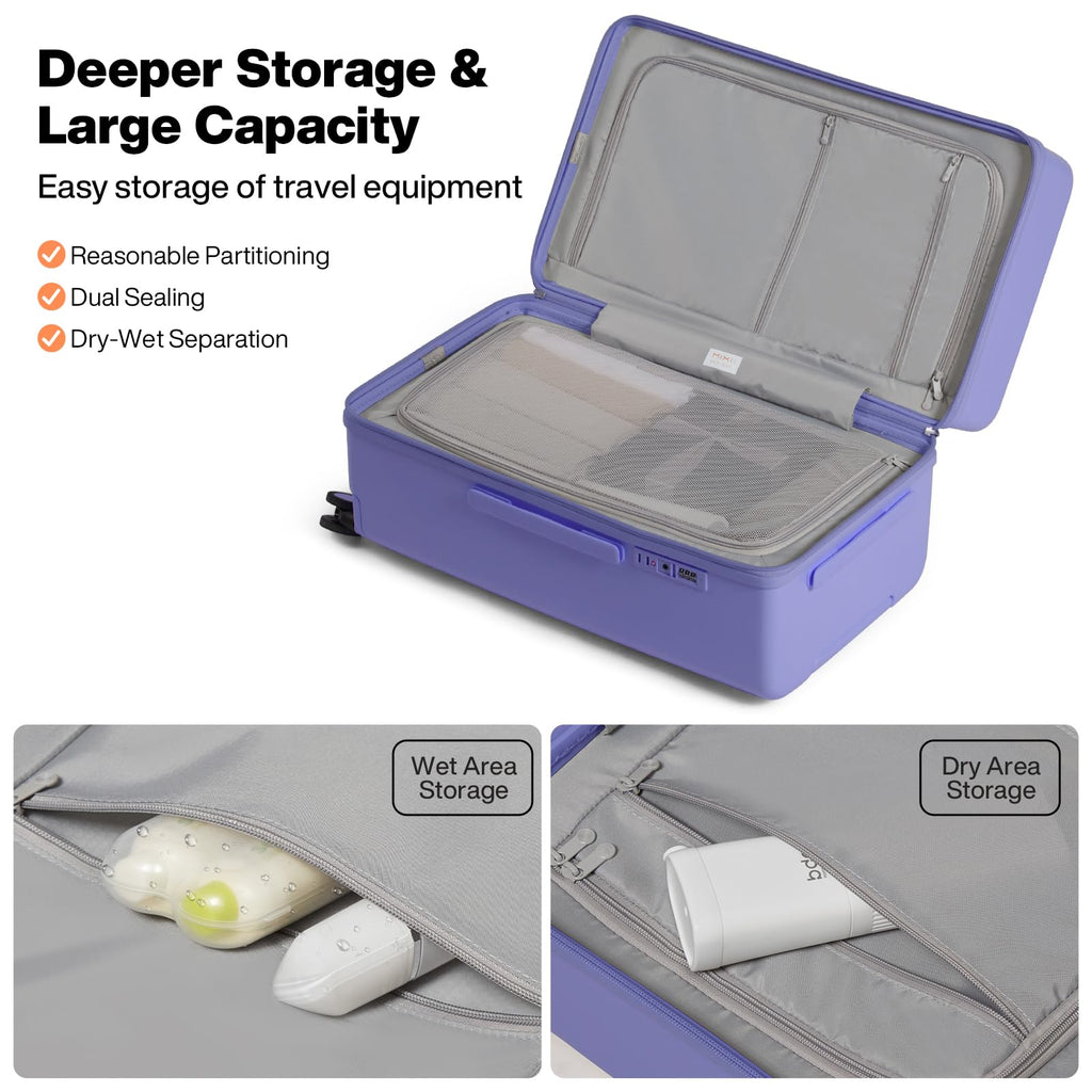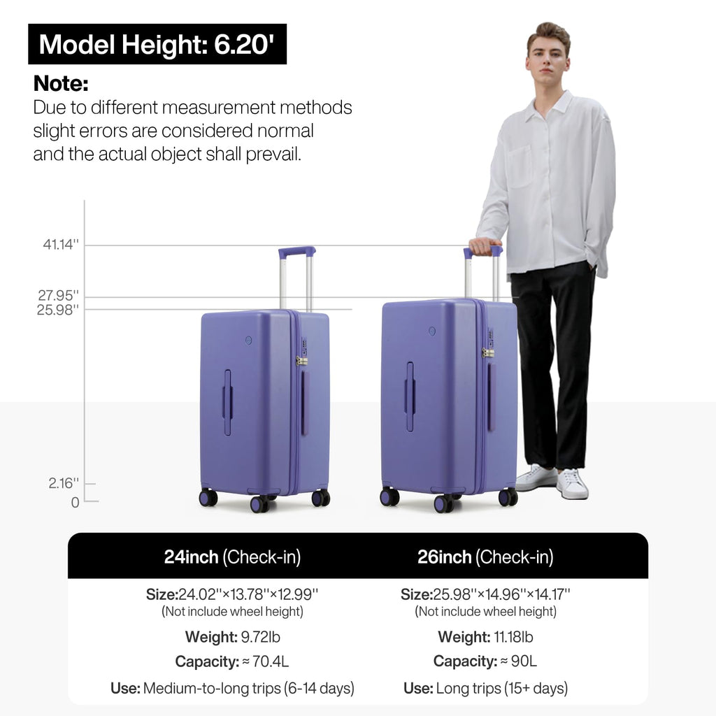 Brand: mixiColor: Dreamy PurpleFeatures: 【Trunk Check Luggage Series】Measuring 14.96*14.73*27.95'' (includes wheels), Weight: 11.17 LB, Capacity: 90L. Mixi luggage features a 4:6 split structure and double-sided enclosed design, easy to store large items for long trips or family outings, while keeping belongings neat and orderly to meet your diverse travel needs...