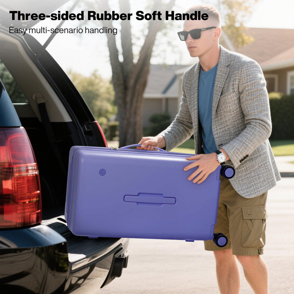 - 【Effortless Traveling】This suitcase is equipped with high-precision double row rotating wheels, durable and smooth, suitable for various surfaces, including pebble roads and carpets. The aluminum telescopic handle is easy to adjust and maneuver; Three-sided handles design allow easy lifting and placement in different scenarios
