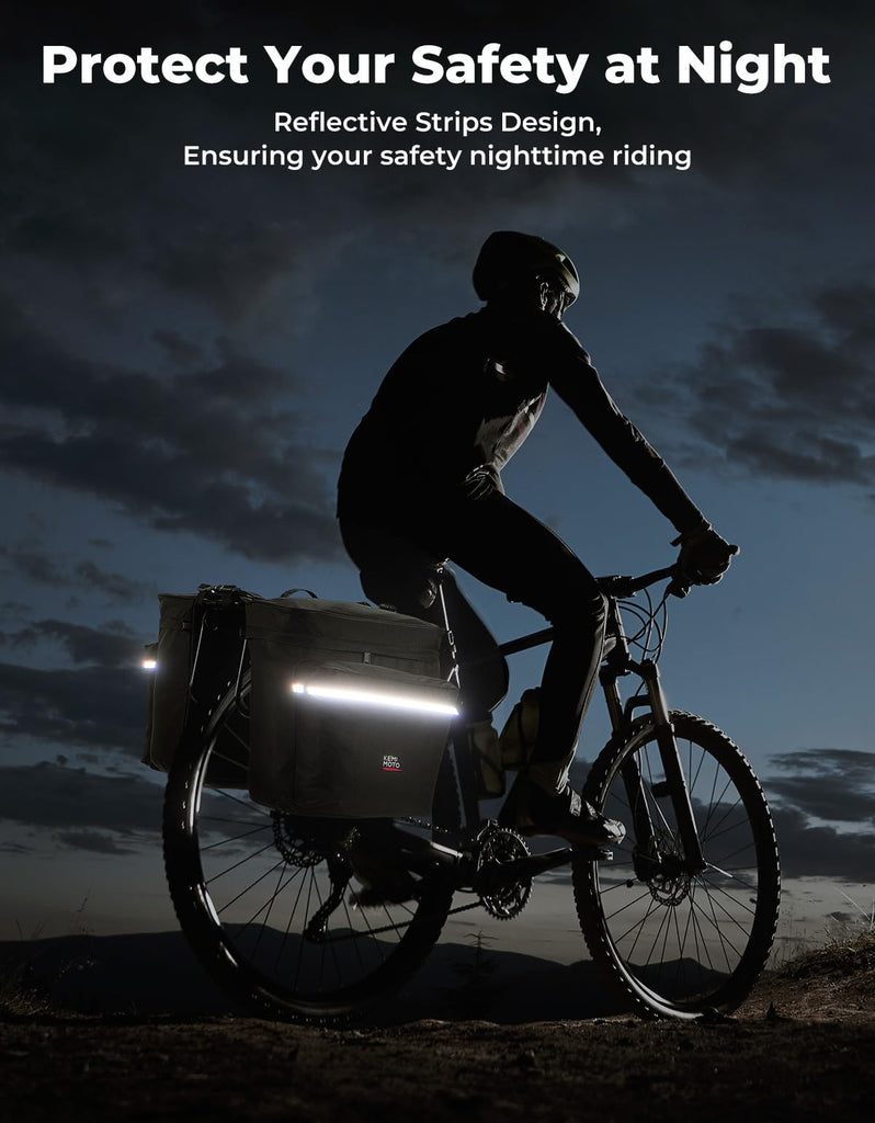 - Large 34L Capacity: This KEMIMOTO pannier bike bags has been upgraded to a large capacity of 17L per bag, and the total capacity of 2 bags is UP to 34L. Includes 2 main compartments for each bag. Plus the 2 pockets on the outside, ideal storage for ebike accessories, daily essentials, biking gear. Ideal for grocery, commuting, and outdoor trips