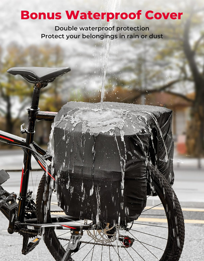 KEMIMOTO Bike Bag Panniers with Rain Cover, 34L Waterproof Bicycle Saddle Bag for Rear Rack Mountain Biking Bags Storage, Ebike Accessories for Commuter Grocery Shopping Travel Carrier, Black