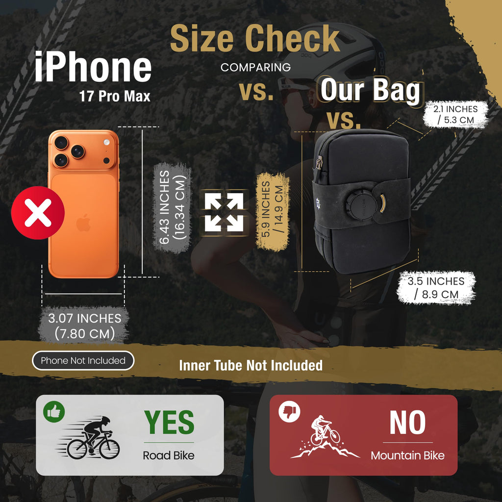 Brand: Lumiere & Co.Color: BlackFeatures: 📏 CHECK SIZE BEFORE ORDERING | We recommend measuring your current setup or desired gear before purchasing. ✅ WHAT FITS INSIDE | Small (0.37L): 1 CO2 cartridge, 1 tube, a small flat multitool, tire lever. For the minimalist rider looking to carry only the essentials....