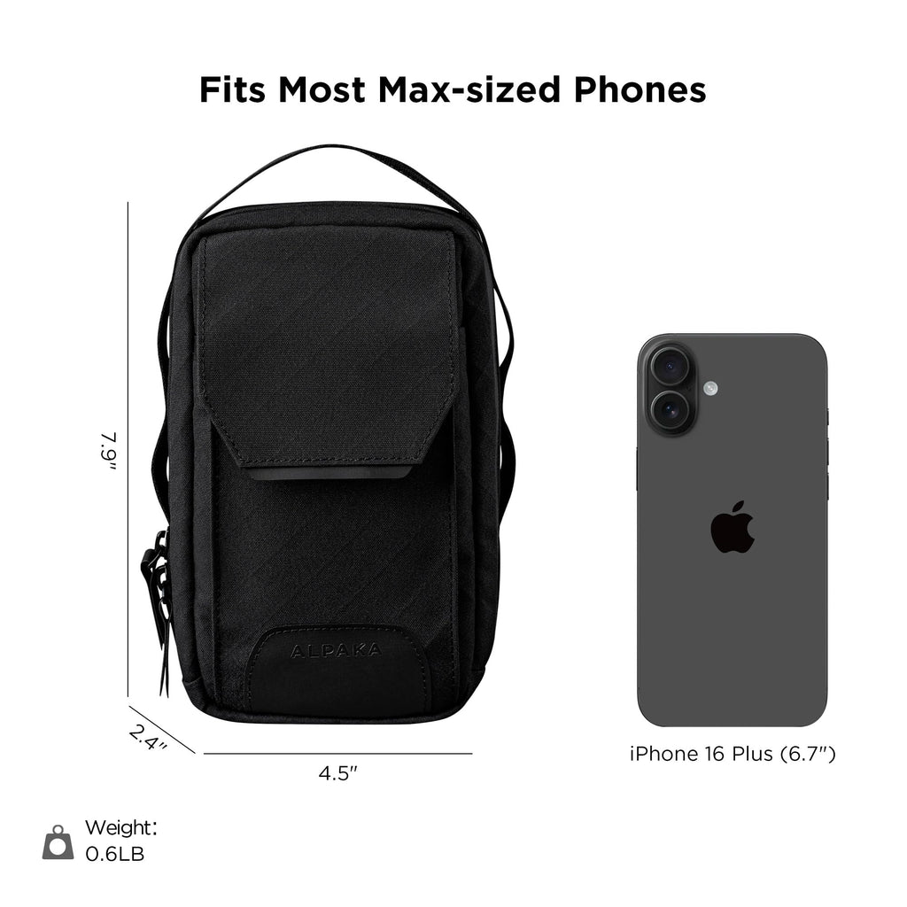 The ALPAKA Modular Sling V2 is the ultimate compact companion, designed for durability, convenience, and versatility. Crafted from ultra-tough Axogrid 300D laminate fabric and constructed with YKK AquaGuard waterproof zippers. This sling bag keeps your essentials secure in any weather. Its magnetic quick-access phone sleeve ensures your device is close at hand, while multiple compartments neatly organize multiple combinations of small itemskeys, earbuds, a slim power bank and more. With an adjustable shoulder strap up to 55”, you can wear it as a crossbody sling, attach it to a backpack via MOLLE straps or carry it as a sleek handbag. The reinforced top handle, HUB-compatible loops, and Maglockz clips add functionality for daily use, whether you're commuting, traveling, or exploring the outdoors. Lightweight yet rugged at only 0.6LB, the Modular Sling V2 is built for everyday durability and smart storage wherever your day takes you.