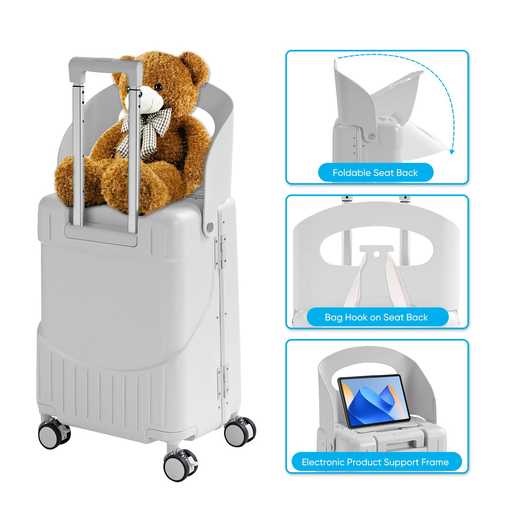 TABU 20" Ride-on Luggage with Seat For Kids & Adults,Carry On Hardshell Ride On Suitcase with 360° Lockable Spinner and TSA Lock, White