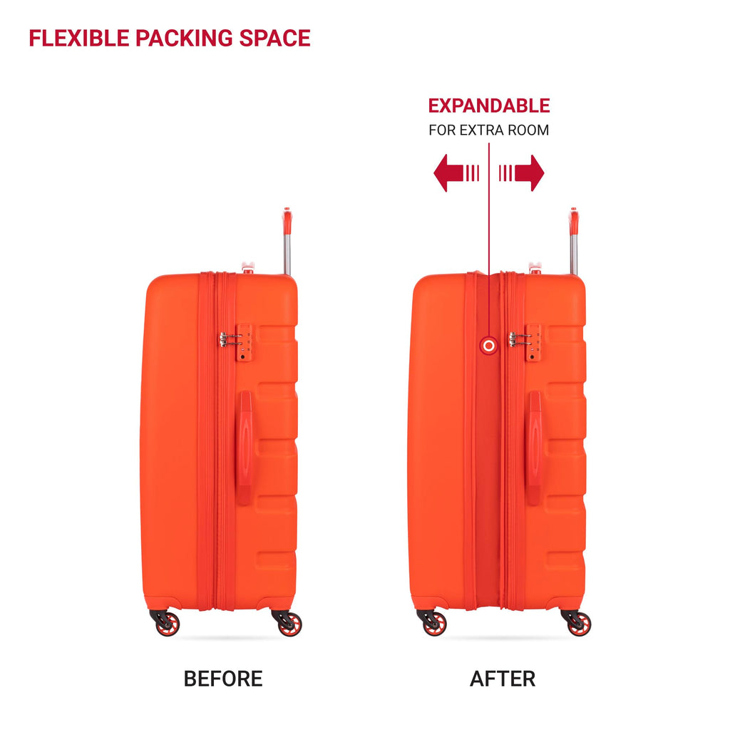Brand: SwissGearColor: OrangeFeatures: 2-Piece Expandable Luggage Set: This rolling suitcase set includes 19-inch and 27-inch suitcases, making it perfect for 2 week trips; Loaded with convenient, space-saving features that let you pack all your travel essentials without the extra bulk Four 360-Degree Multi-Directional Spinner Wheels: Built with maximum maneuverability in...