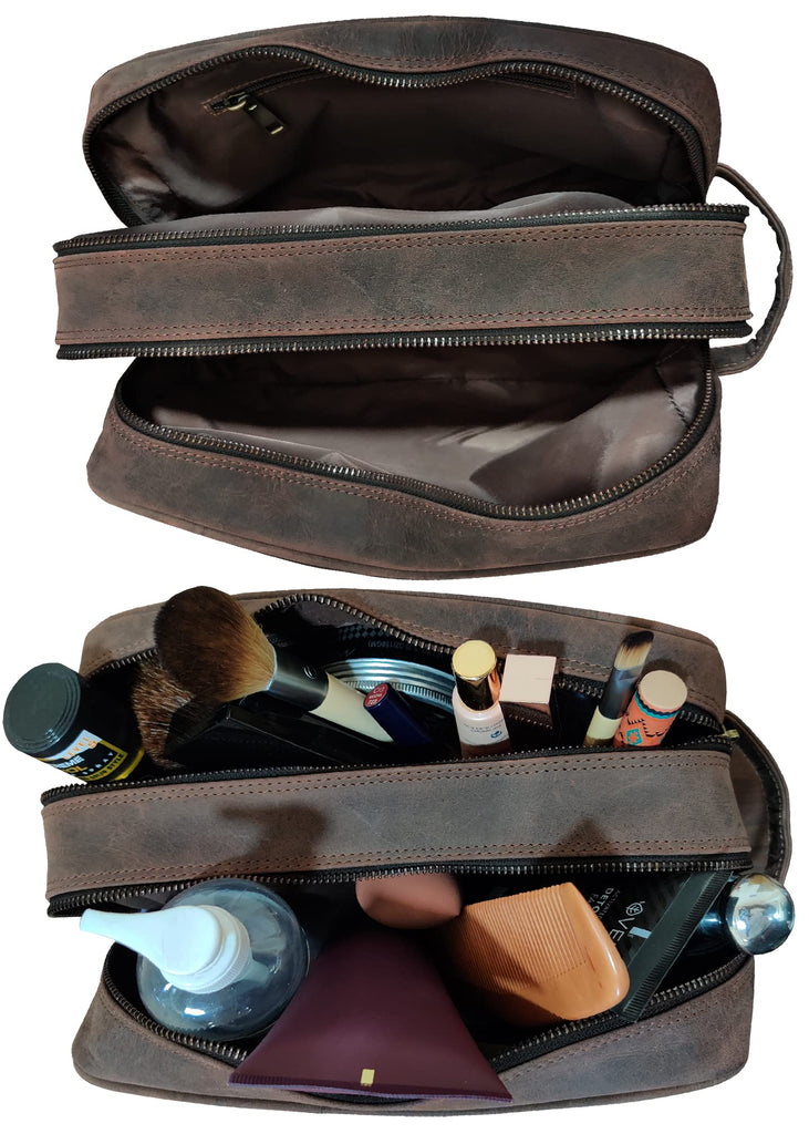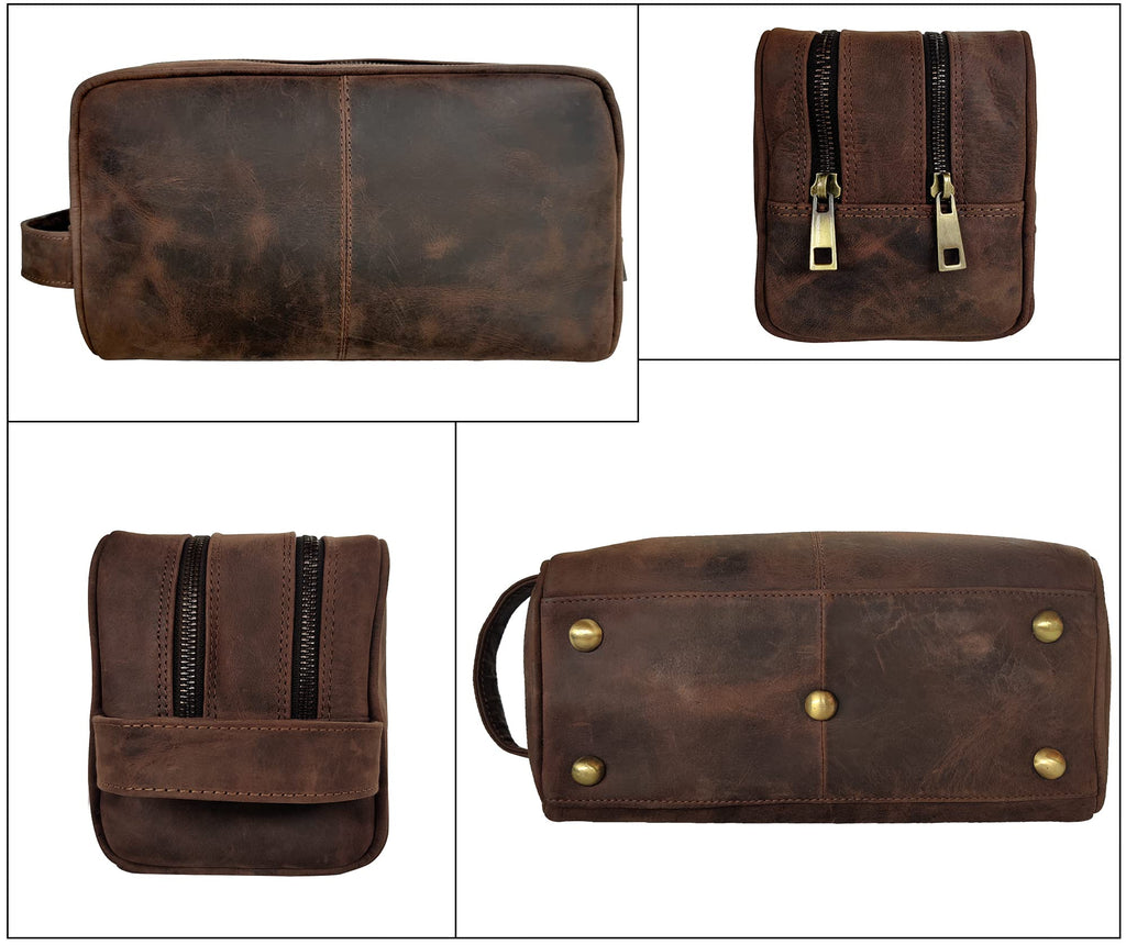 - ✅ FULL-GRAIN BUFFALO LEATHER – Handcrafted from ethically sourced full-grain buffalo leather, this leather toiletry bag ages beautifully with rich patina.