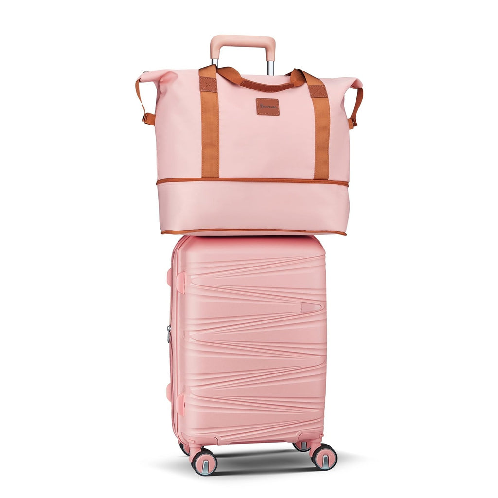 TRAVELEO 4 Piece Carry On Luggage Set 20 Inch, Expandable PP Hardshell Suitcase with Detachable Spinner Wheels & TSA Lock, Includes Cosmetic Case, Travel Tote & Toiletry Bag, Lightweight (Pink)