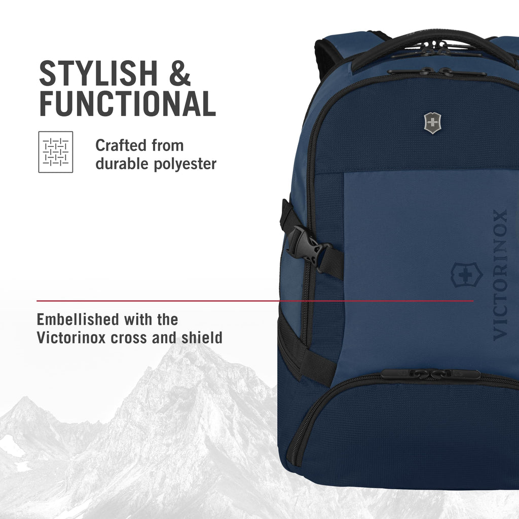 Brand: VictorinoxColor: BlueFeatures: Sleek Backpack: This travel bag features tech compartments, adjustable straps, and airflow channels so you can travel efficiently and comfortably VX Sport Backpacks: Travelers can rely on these high-quality, durable, and versatile backpacks to carry or wheel their gear Premium Travel Backpack: Zip right through at the...