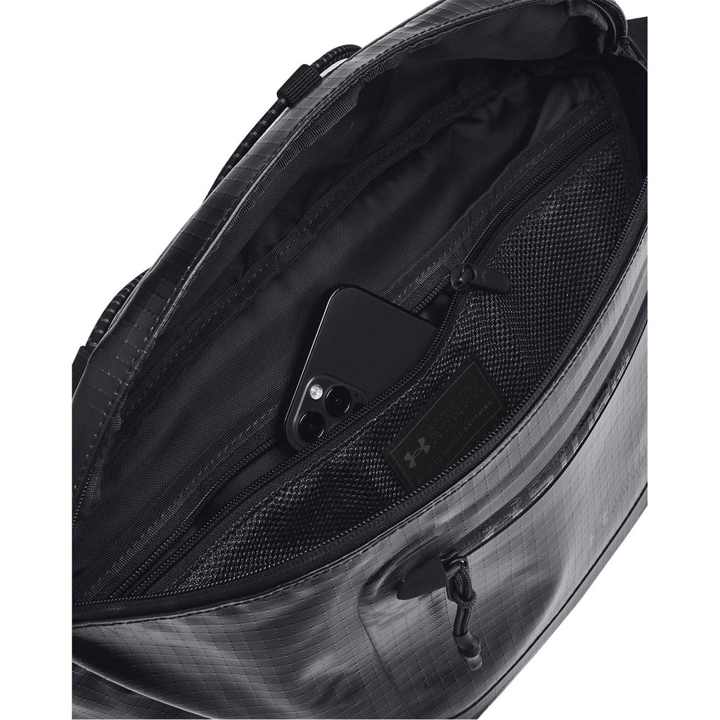 Brand: Under ArmourColor: Black / Jet GrayFeatures: Water-resistant UA Storm technology keeps your stuff dry Zippered main compartment with internal organization pockets & front valuables pocket Adjustable top bungee for easily stashing a water bottle Adjustable webbing strap with elastic & clip closure that can be worn as a waist...