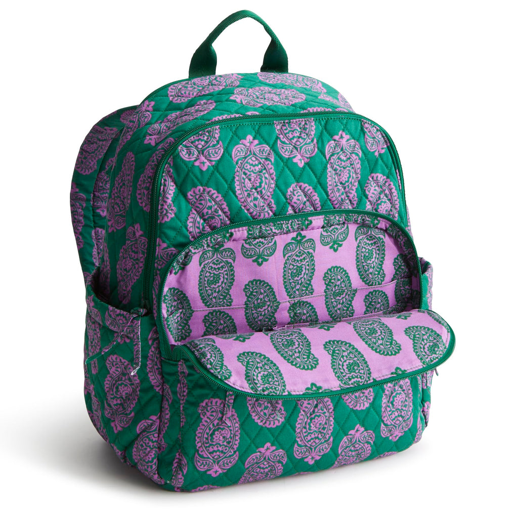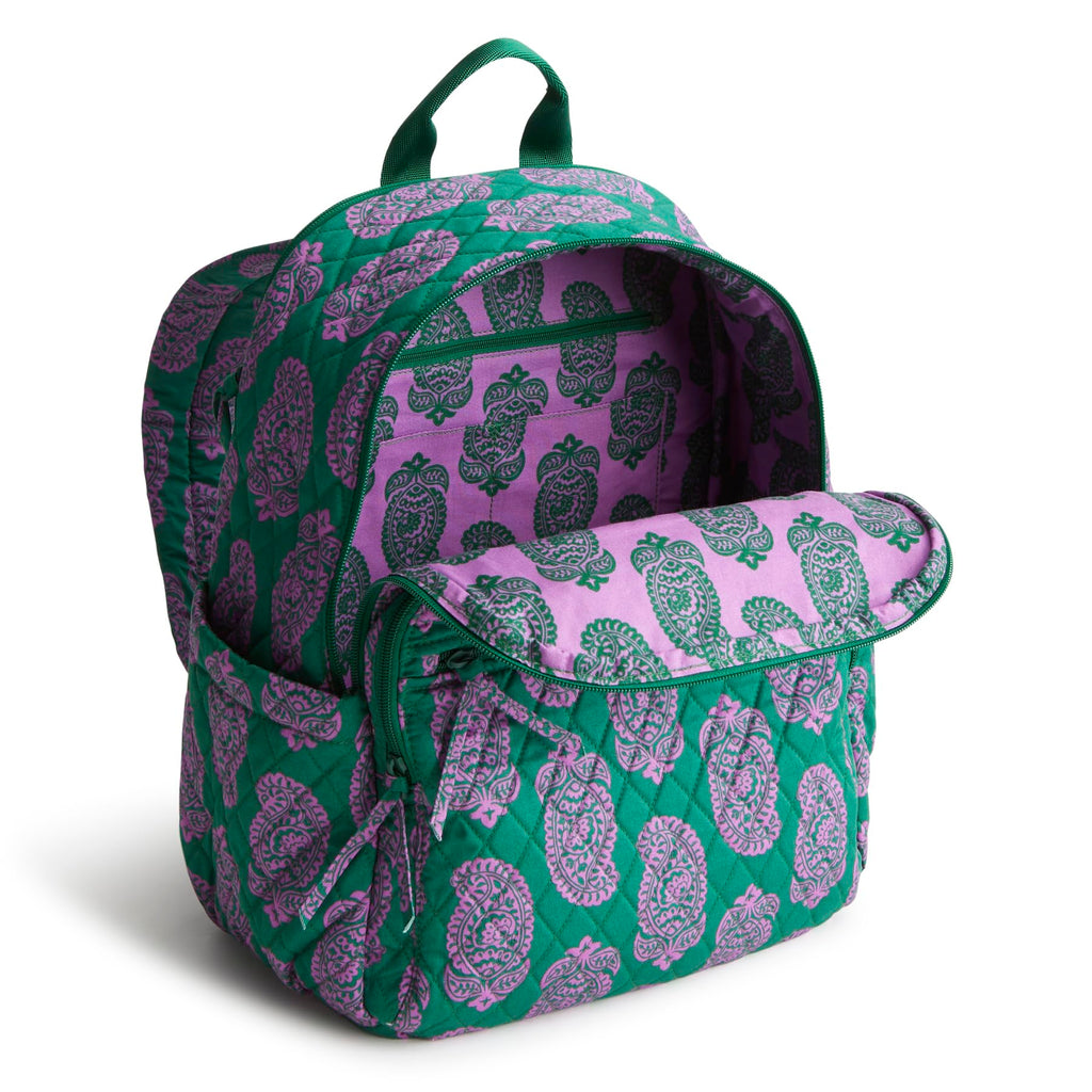Vera Bradley Women's Bancroft Backpack - Premium Cotton, Iconic Paisley Green Jacket, One Size