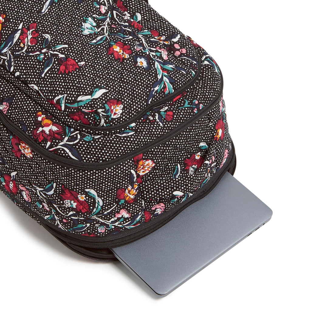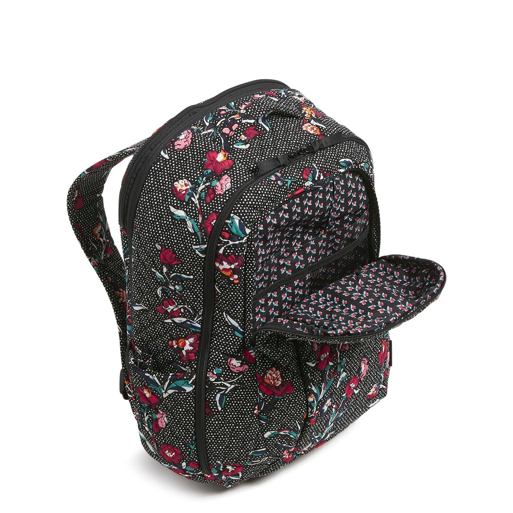 Vera Bradley Women's, Cotton Large Travel Backpack Travel Bag, Perennials Noir Dot, One Size