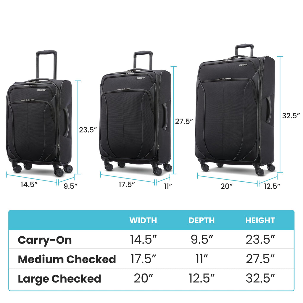 Brand: American TouristerColor: Jet BlackFeatures: RUGGED AND DURABLE ABS Shell MULTI-STAGE ergonomic trolley handle BOOK OPENING CASE with mesh divider and cross straps in main compartment with a zipped modesty pocket SINGLE SPINNER WHEELS for a smooth ride and straight...