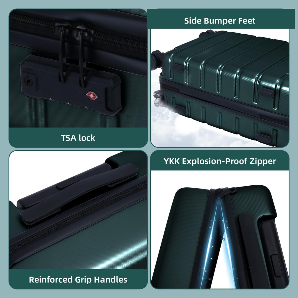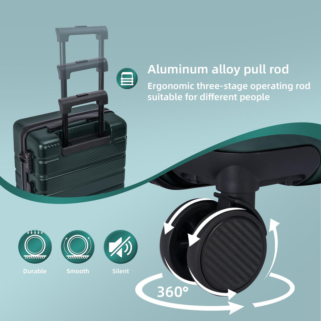 - High Quality Suitcase: This hard shell carry-on luggage is made of 100% polycarbonate (PC) material, which has excellent strength, flexibility, lightweight and durable, clear texture, and is not easy to scratch, making the hard shell luggage keep its beauty from trip to trip.