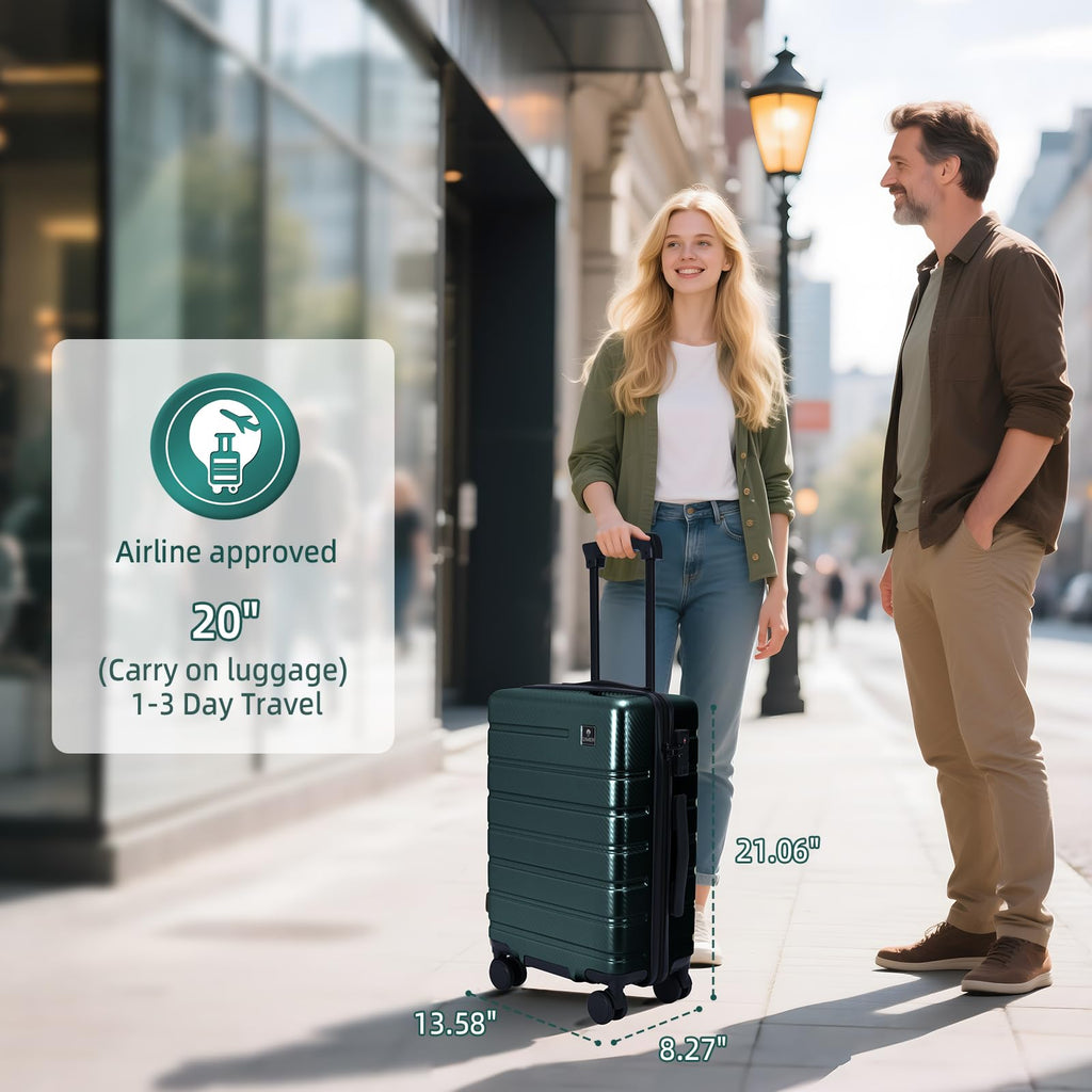QIMER Carry on Luggage, PC Hard Shell Suitcase 22x14x9 Airline Approved TSA Lock YKK Zippered Double Spinner Wheels Lightweight Travel for Men and Women, 20 Inch Green