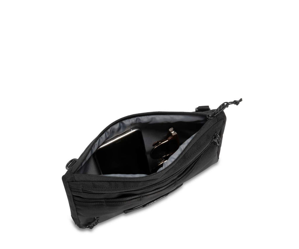 - KEEP IT ORGANIZED: Internal pocket fits most smart phones; Quick access front pocket with key keeper; Exterior webbing offers attachment for carabiners or U-lock