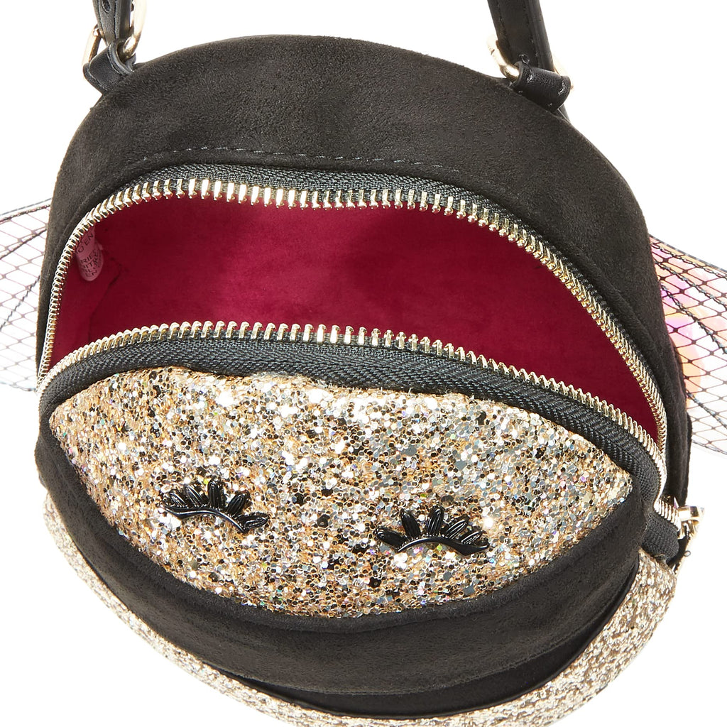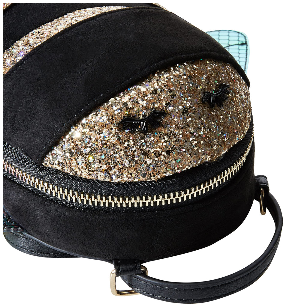 Brand: Betsey JohnsonColor: Black-honey BeeFeatures: Wear as backpack or crossbody bag Daisy zipper puller 24" drop strap when fully extended 6.5" L x 1.5" D x 9.5" H Gold glitter details model number: BJ32820APart Number: BJ32820ADetails: Description What's the buzz?! You need this kitsch bag! This convertible bee can be...
