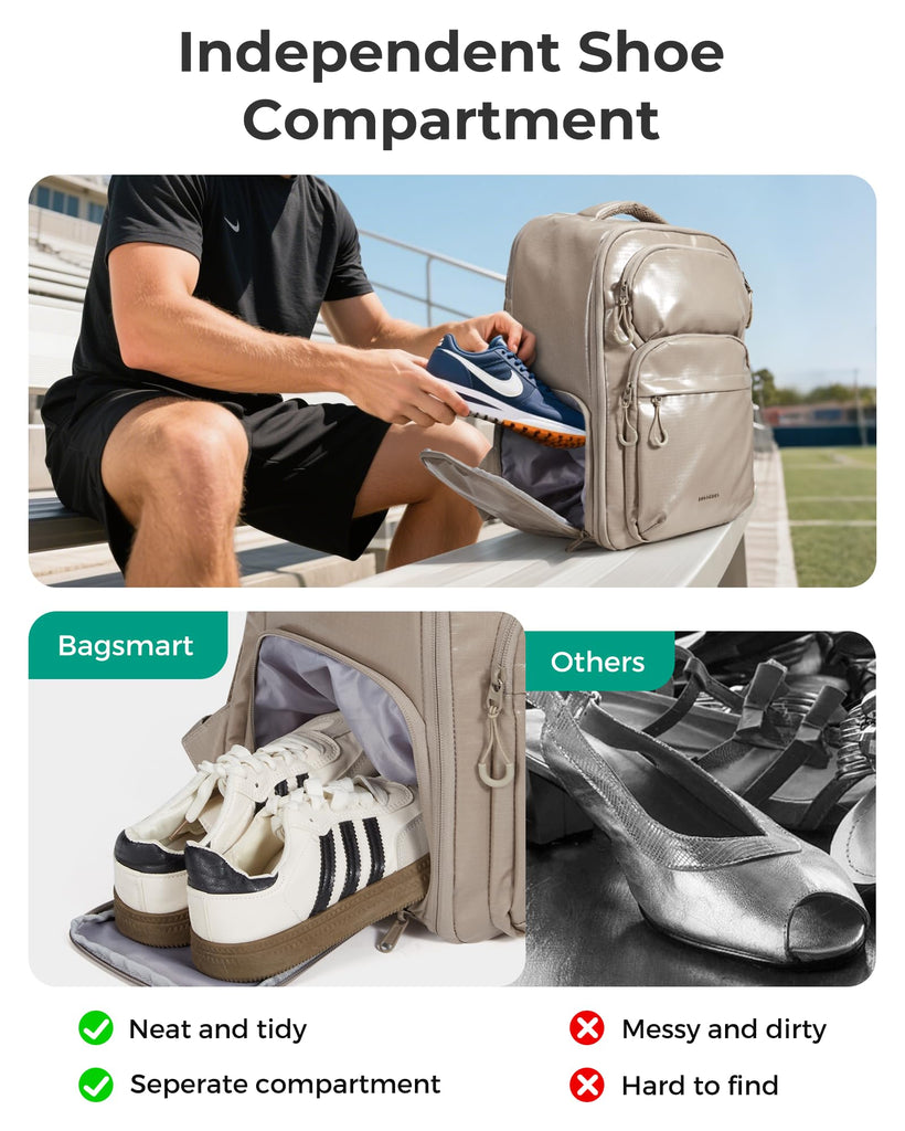 - Your Go-To Travel Companion: Stay perfectly organized with this versatile travel backpack (16.9" x 11.4" x 9.3"). It’s designed with multiple compartments including a padded sleeve that fits most 17.3” laptops—plus a separate shoe compartment to keep your footwear away from clothes and gear. No more mixing clean items with worn shoes. Travel tidy, travel smart.
