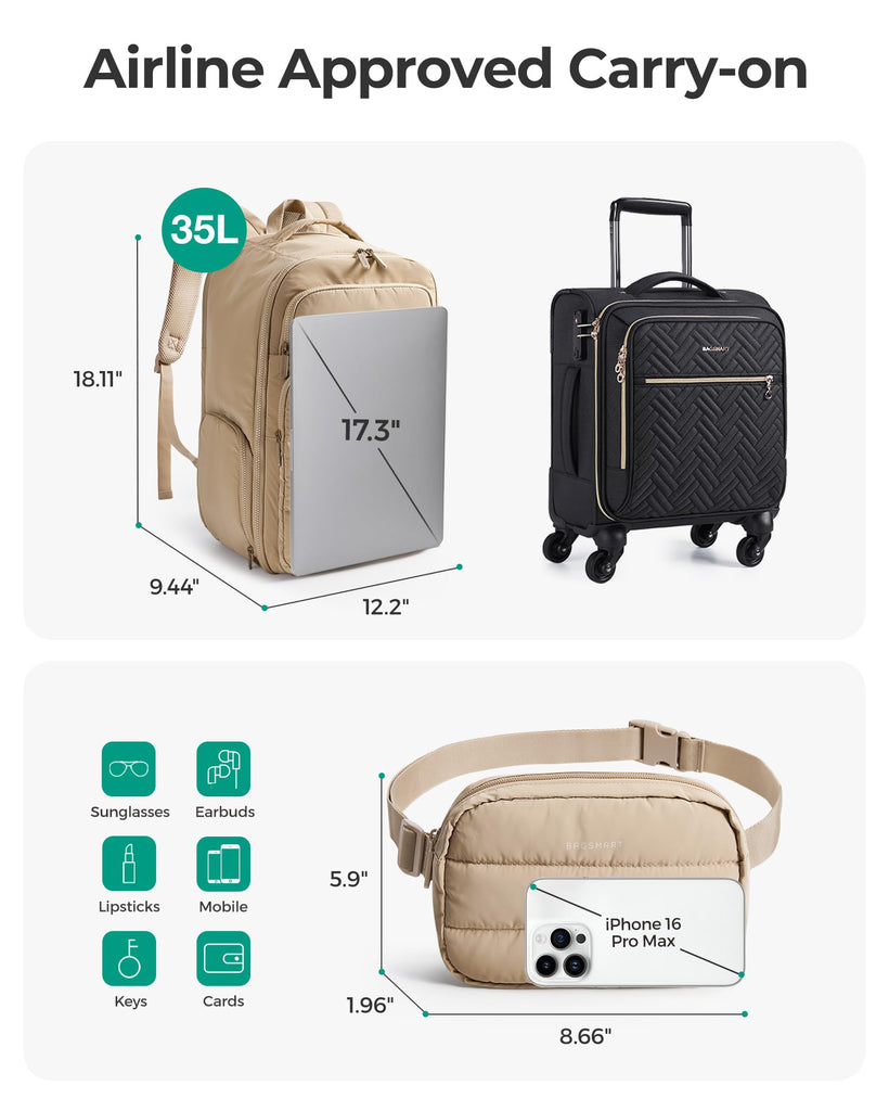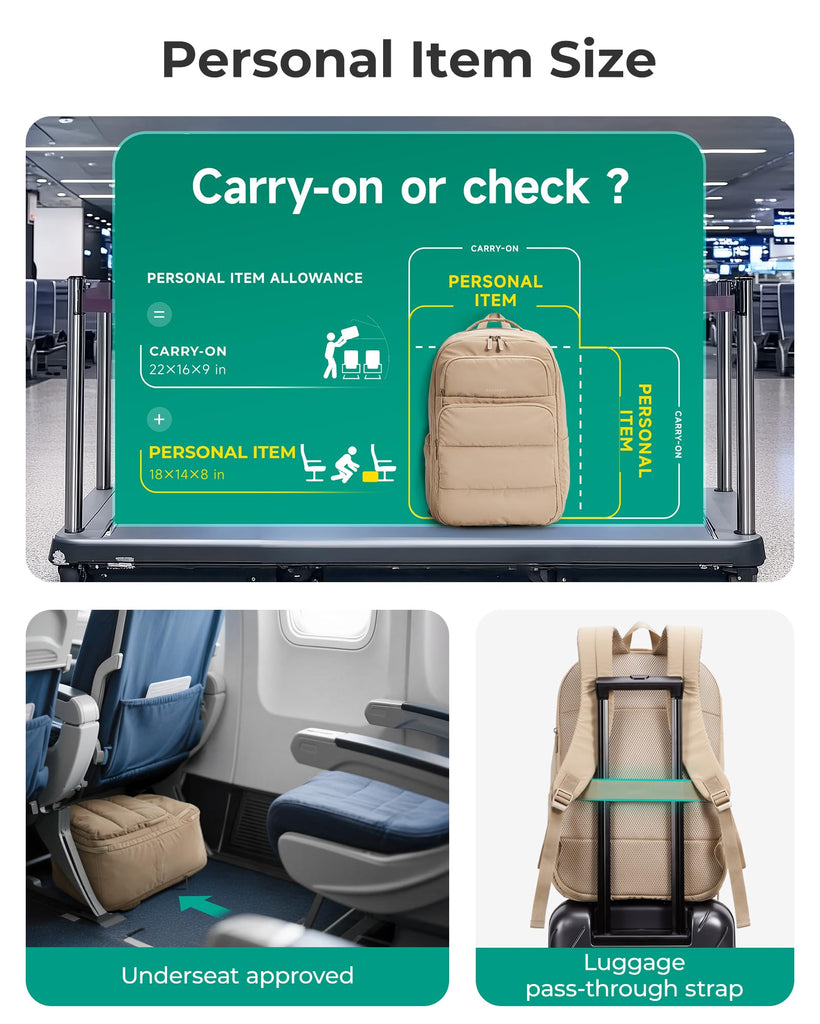 BAGSMART 35L Travel Backpack Women, 17.3 Inch Carry On Backpack Flight Approved, Personal Item Backpack Travel Bag, Water Resistant Casual Daypack, Desert