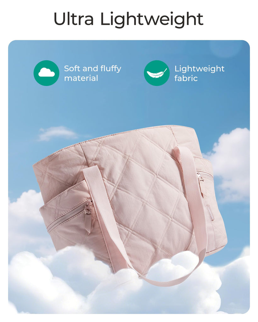 BAGSMART Crush Tote Bag for Women, 20L Puffer Work Tote with Zipper, Travel Essentials Quilted Nurse Hospital Bag, Pink