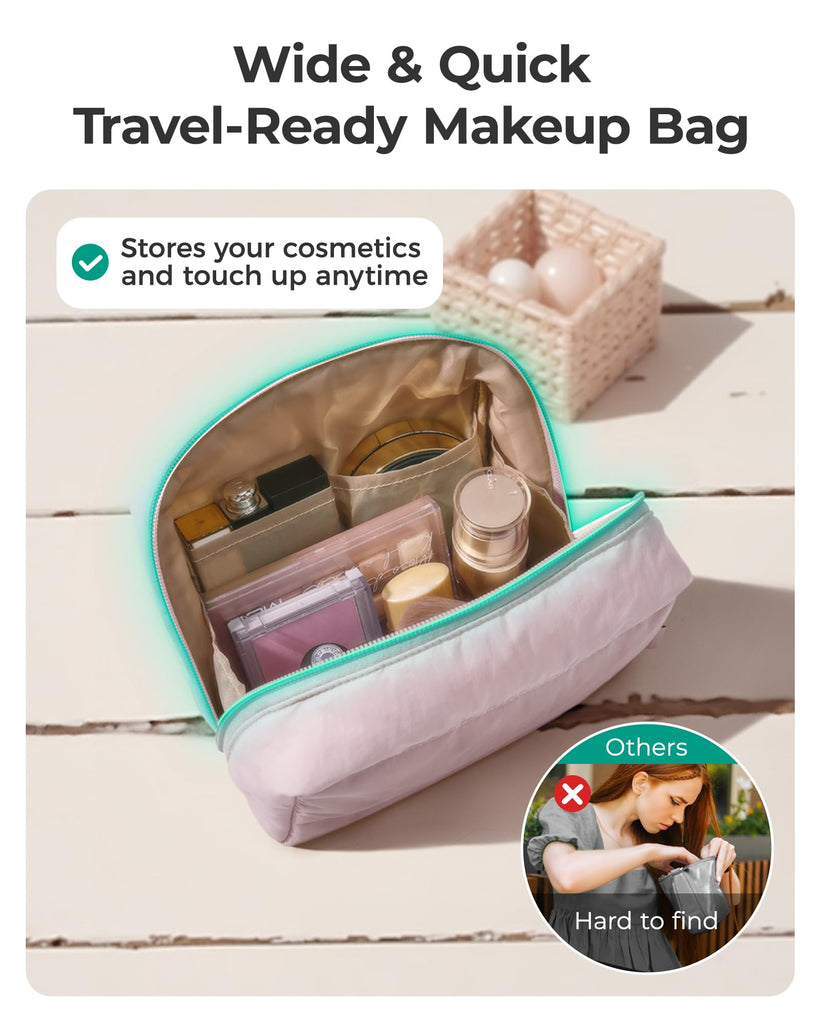 - Wide Opening, Zero Hassle - Snap open this makeup bag and see every item at a glance – no more frantic digging for your favorite lipstick during busy mornings!