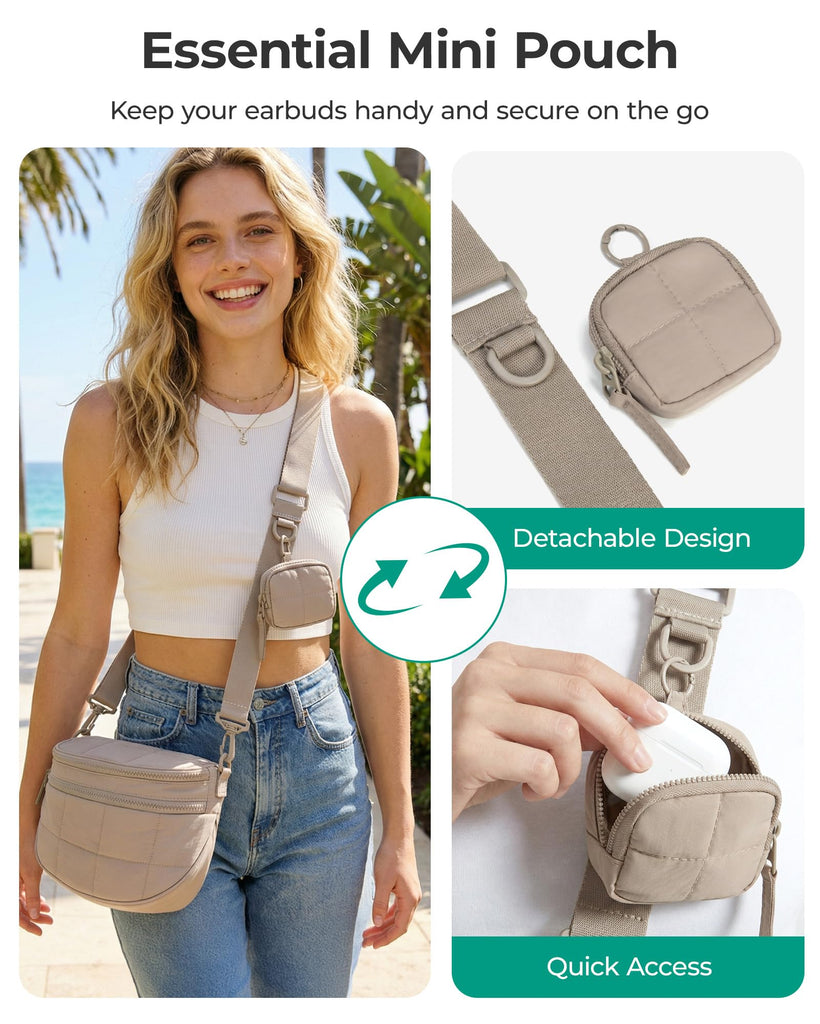 BAGSMART Small Crossbody Bags for Women,Puffer Cute Bum Bag with Pouch, Quilted Purse for Daily Travel College, Camel