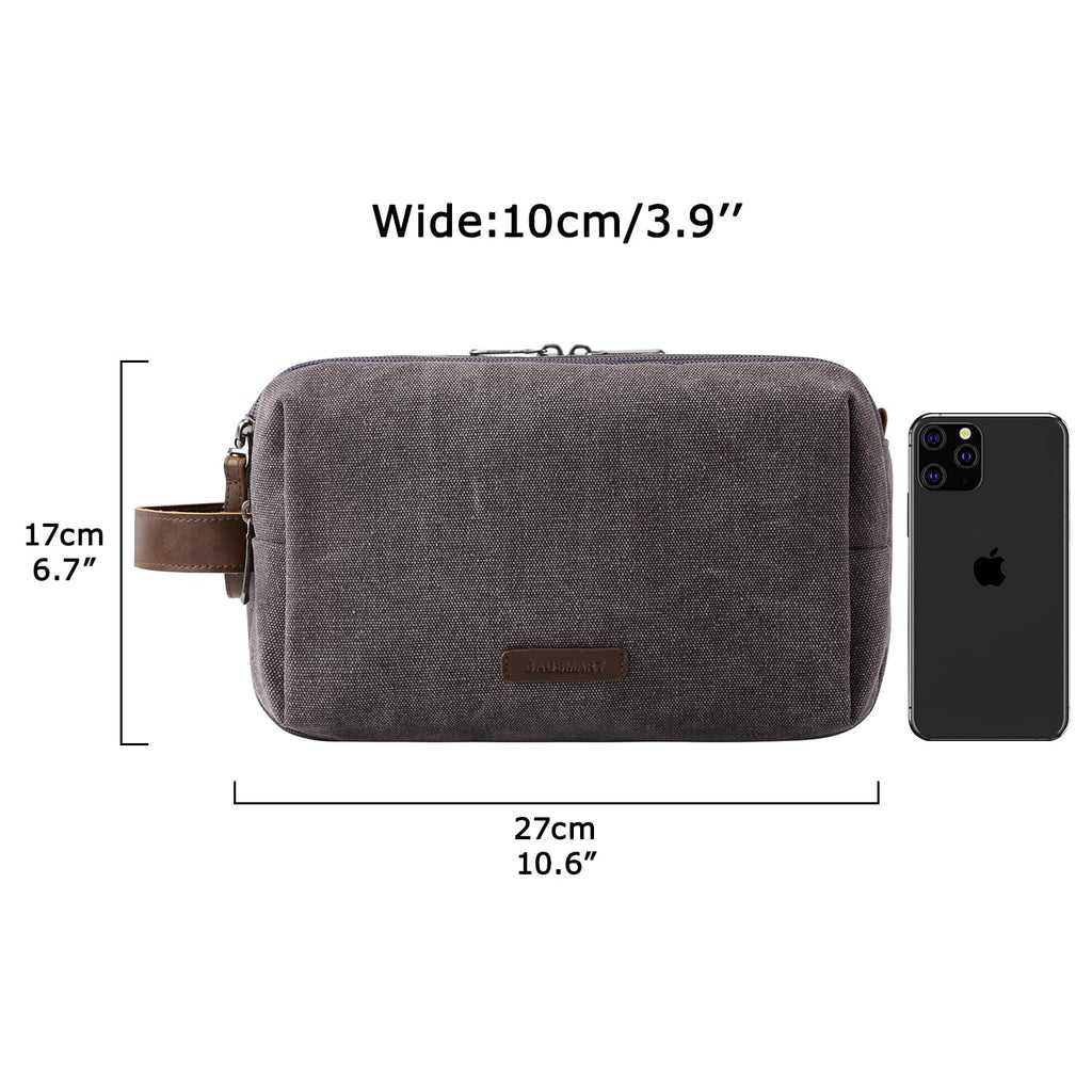 BAGSMART Toiletry Bag for Men, Canvas Travel Toiletry Organizer Dopp Kit Water-resistant Shaving Bag for Toiletries Accessories,Grey-Medium