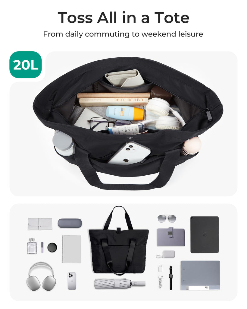 Brand: BAGSMARTColor: BlackFeatures: Large Size and Foldable-Unfolded: 16.5''L x 6''Wx 14''H, Folded: 7.9'' x 7''; This large tote bag has a huge capacity and can hold A4 books and 15.6-inch laptops. The travel tote bag can be folded into a small pouch, easy to put into your backpack, travel bag,...
