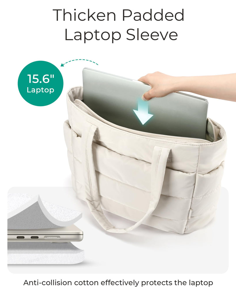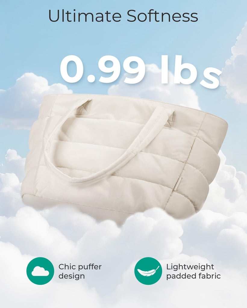 BAGSMART Tote Bag for Women, Lightweight Puffy Tote Bag with Compartments Shoulder Bag Handbag Quilted Shoulder Bag Handbag for Travel, Work, Beach, Gym, Shop(Beige)
