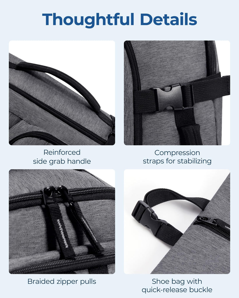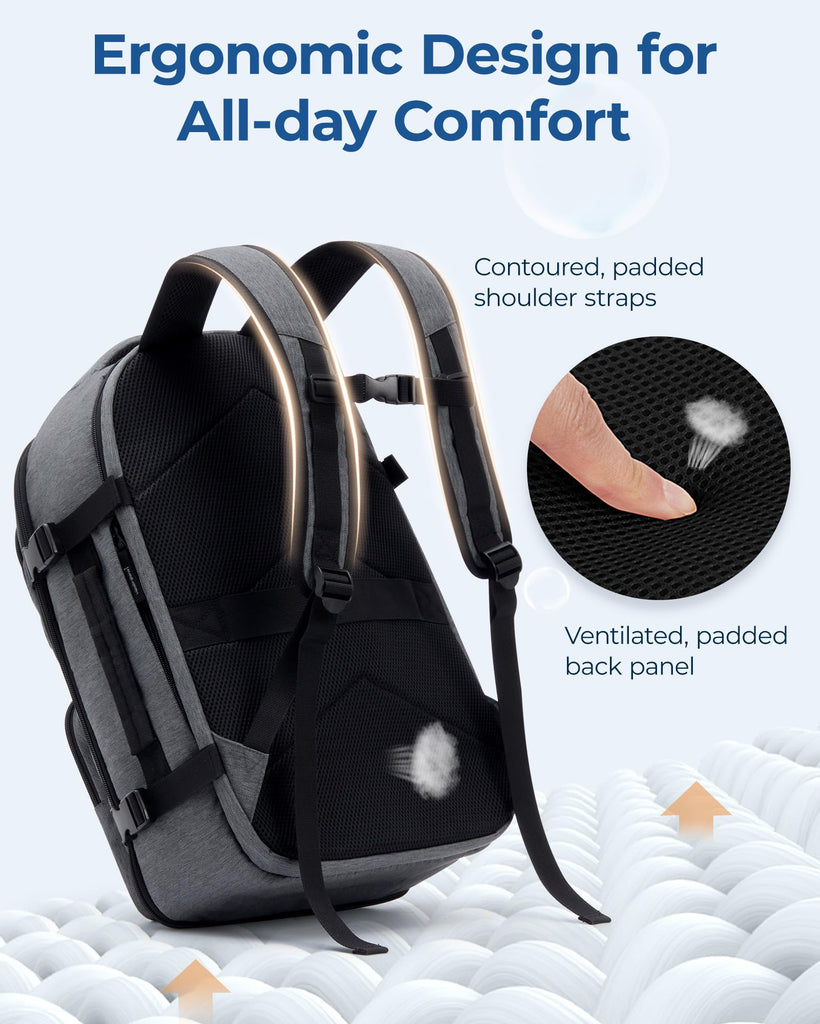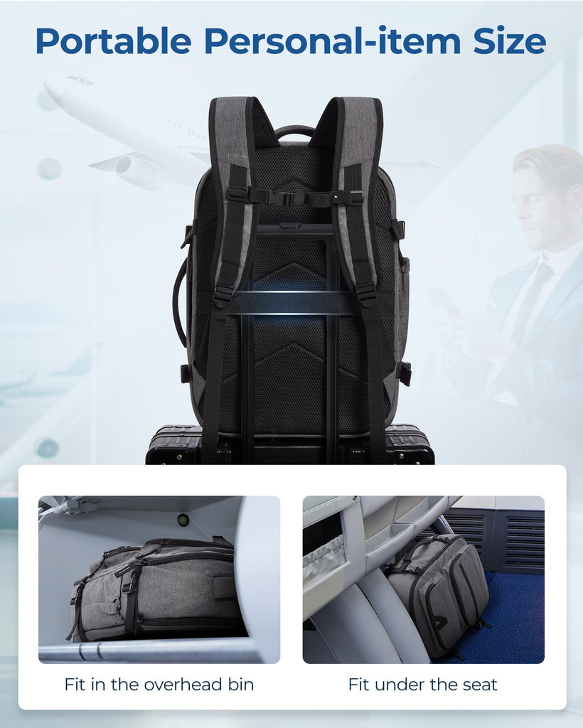- Versatility On The Go: This backpack for travel offers diverse carrying options - wear it as a traditional backpack, carry it by hand, or conveniently attach it to your luggage handle for swift movement through airports. Its adaptability makes it an airplan-approved backpack suitable for various travel scenarios