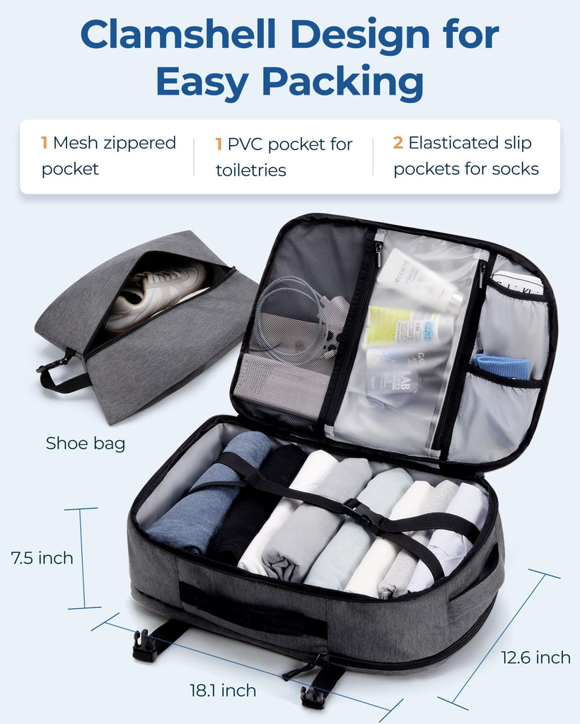- TSA-Friendly Design: Designed with a convenient 180° clamshell opening, our travel backpack ensures hassle-free security checks at airports. The smart design allows you to easily access your belongings whenever needed, making it an ideal backpack for travel enthusiasts