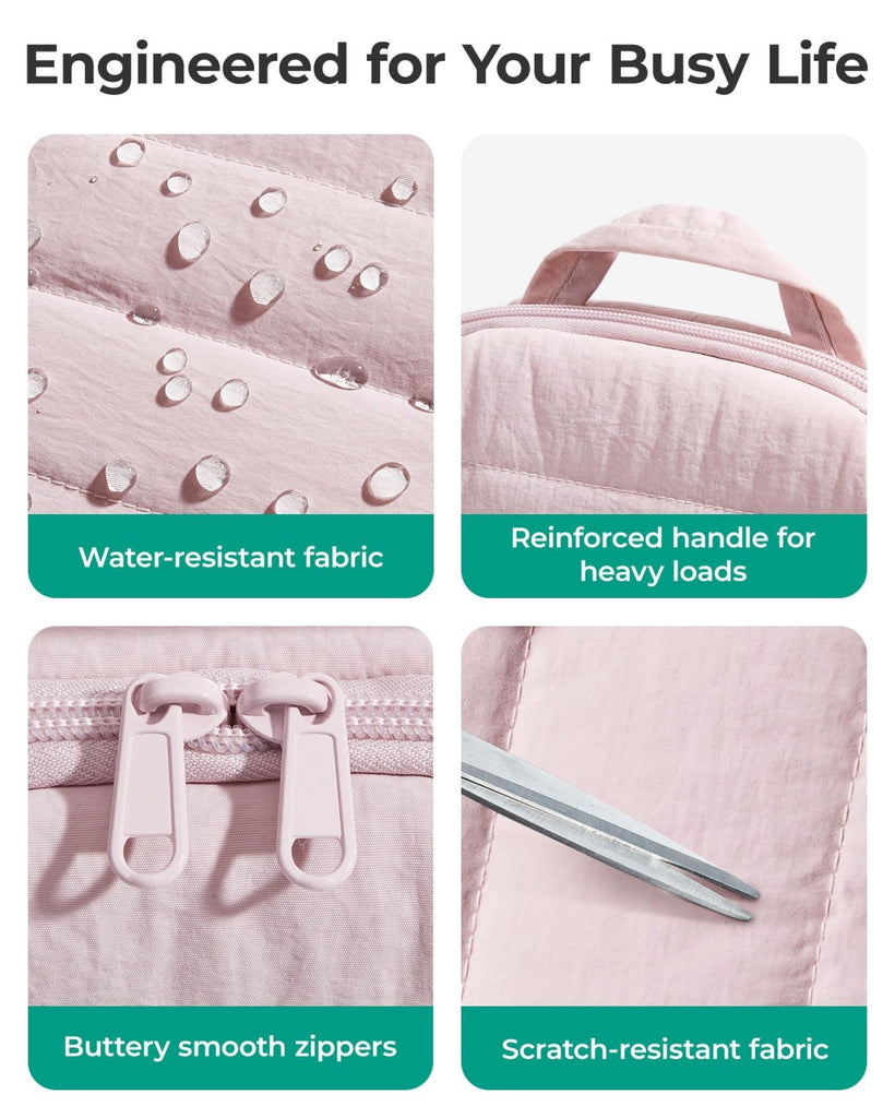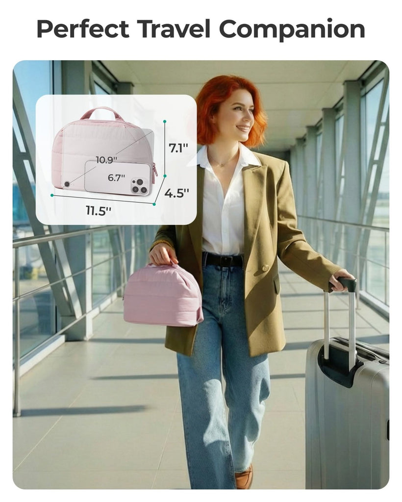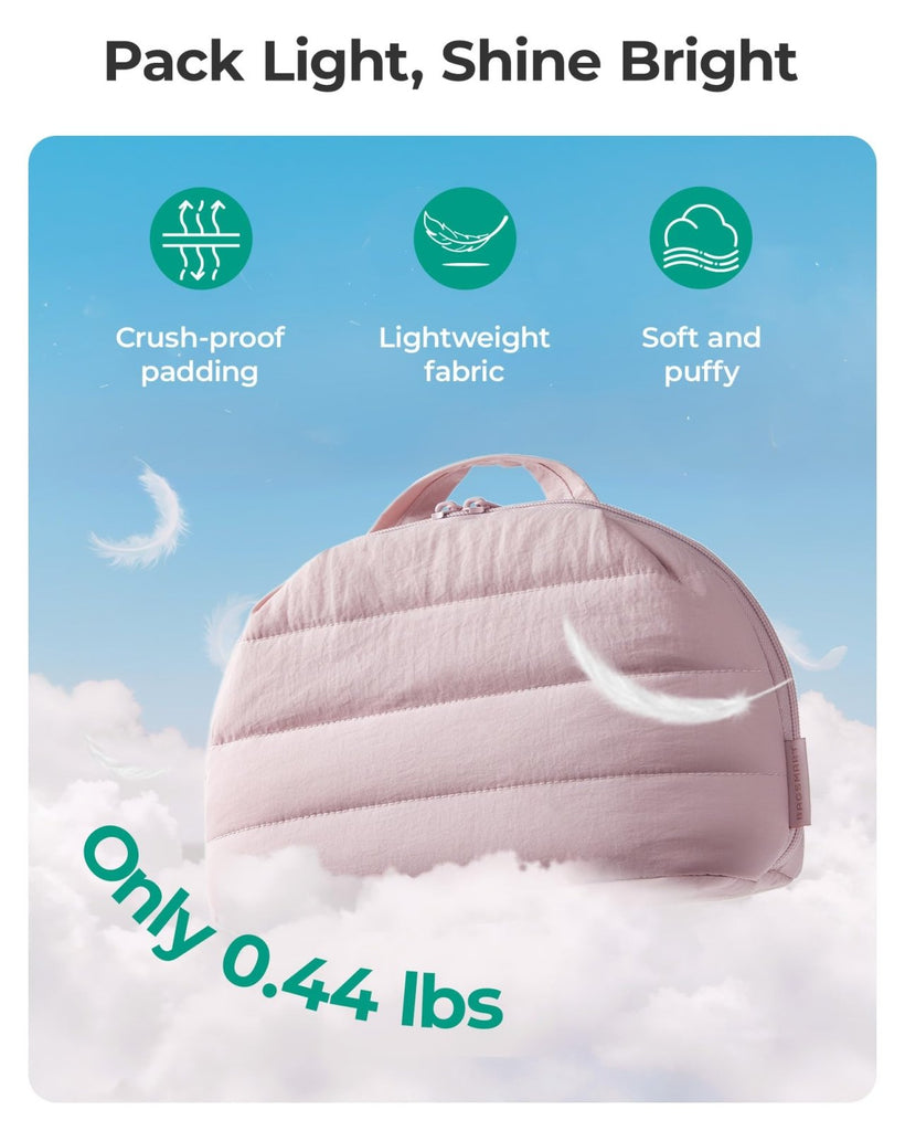 - 【Lightweight & Travel-Tough】Weighing only 0.44 lbs, this essential toiletry bag slides easily into any carry-on. Built for the road with water-resistant fabric, puffy padding, and a sturdy zipper, it gives your essentials the lightweight portability and serious protection you need in a reliable make up bag