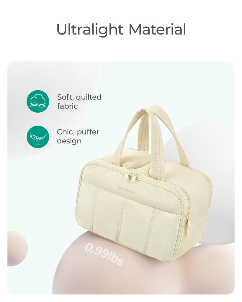 - Cute and Soft Materials & Handle: The handle is also made of soft material to relieve your pressure. Made of soft and luxurious fabric, this puffy toiletry bag is like a soft, stretchy pillow, a super cute toiletry bag. Efinitely an ideal Christmas gift for yourself, your family, and your friend.