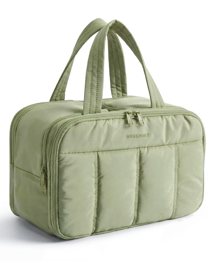 BAGSMART Travel Toiletry Bag, Puffy Large Toiletry Bag for Women, Lightweight Cosmetic Makeup Bag Organizer with Handle for Traveling, Accessories, Essentials, Toiletries (Green)