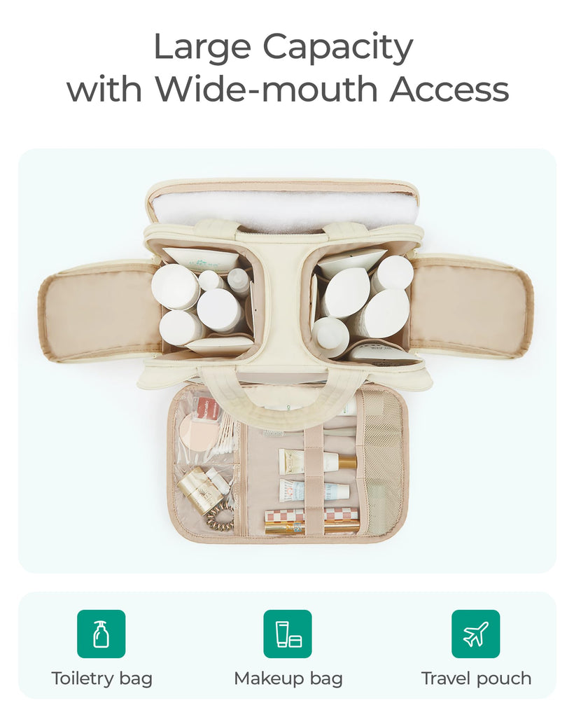 - Excellent Functionality: Unique design allows you to get a travel bag for toiletries, shaving kit or makeup bag, all in one. It's a great choice for business trips, travel, gym, camping, home use, and more.
