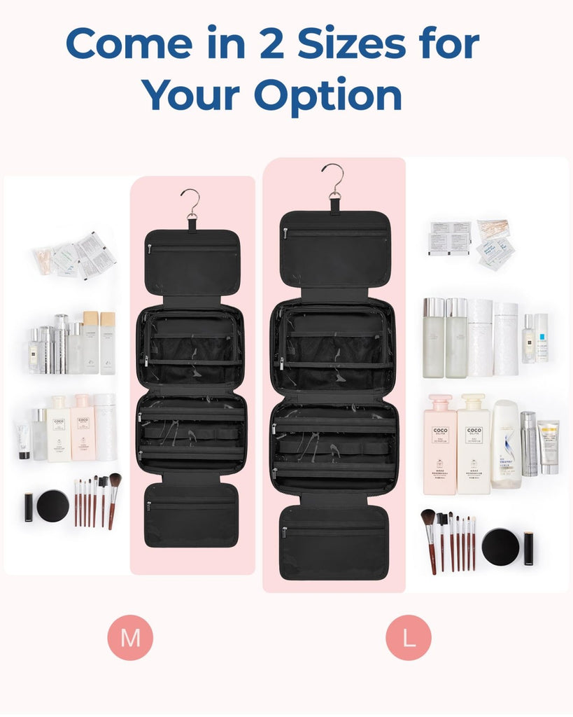 - ๐๐๐ซ๐ ๐ ๐๐๐ฉ๐๐๐ข๐ญ๐ฒ: Medium size - 11''L x 4.7''W x 7.9''H(closed). Large size - 12.2''L x 4.7''W x 9.1''H(closed). The travel toiletry bag can perfectly organize your necessary travel toiletries and makeup storage