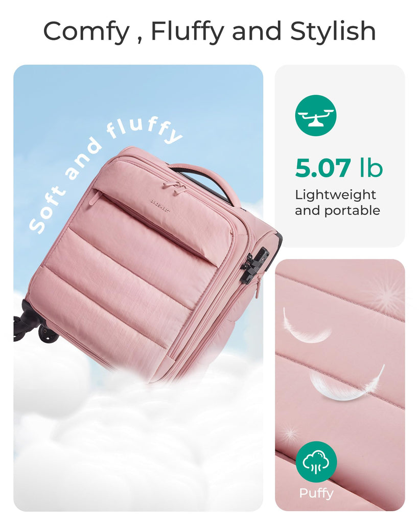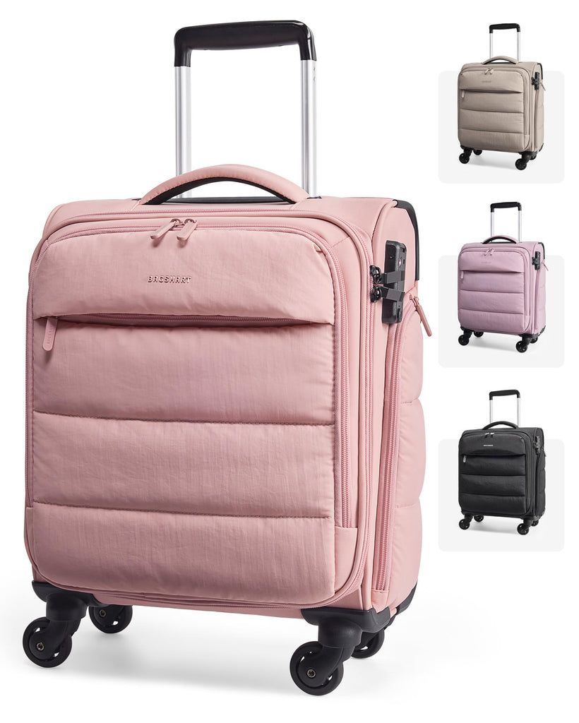 Brand: BAGSMARTColor: Sakura PinkFeatures: Airline-Approved Freedom dimensions: 15.7"×13.8×7.9". No more baggage fees or overhead struggles. Our carry-on luggage perfectly fits under airline seats, keeping essentials close. For seamless boarding, avoid overstuffing the front pocket. Glide Effortlessly: Four 360° silent wheels and an adjustable aluminum handle make navigating airports and streets...