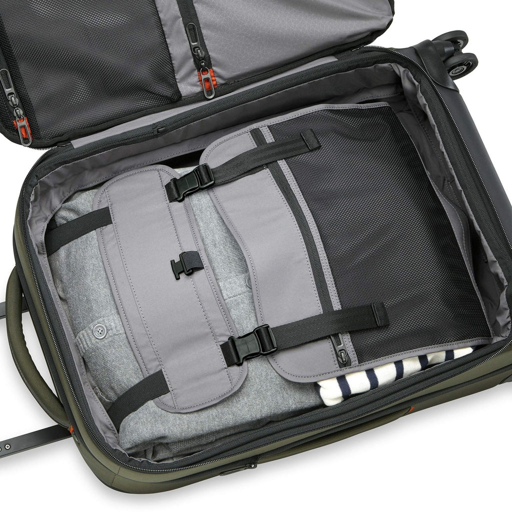 Brand: Briggs & RileyColor: HunterFeatures: DOMESTIC CARRY-ON LUGGAGE - Measuring 22" x 14" x 9-11", this packing system expands for extra packing space, then compresses back to its original size to easily fit most US overhead bins 360 SPINNER WHEELS - Move smoothly in any direction with four shock-absorbing spinner...