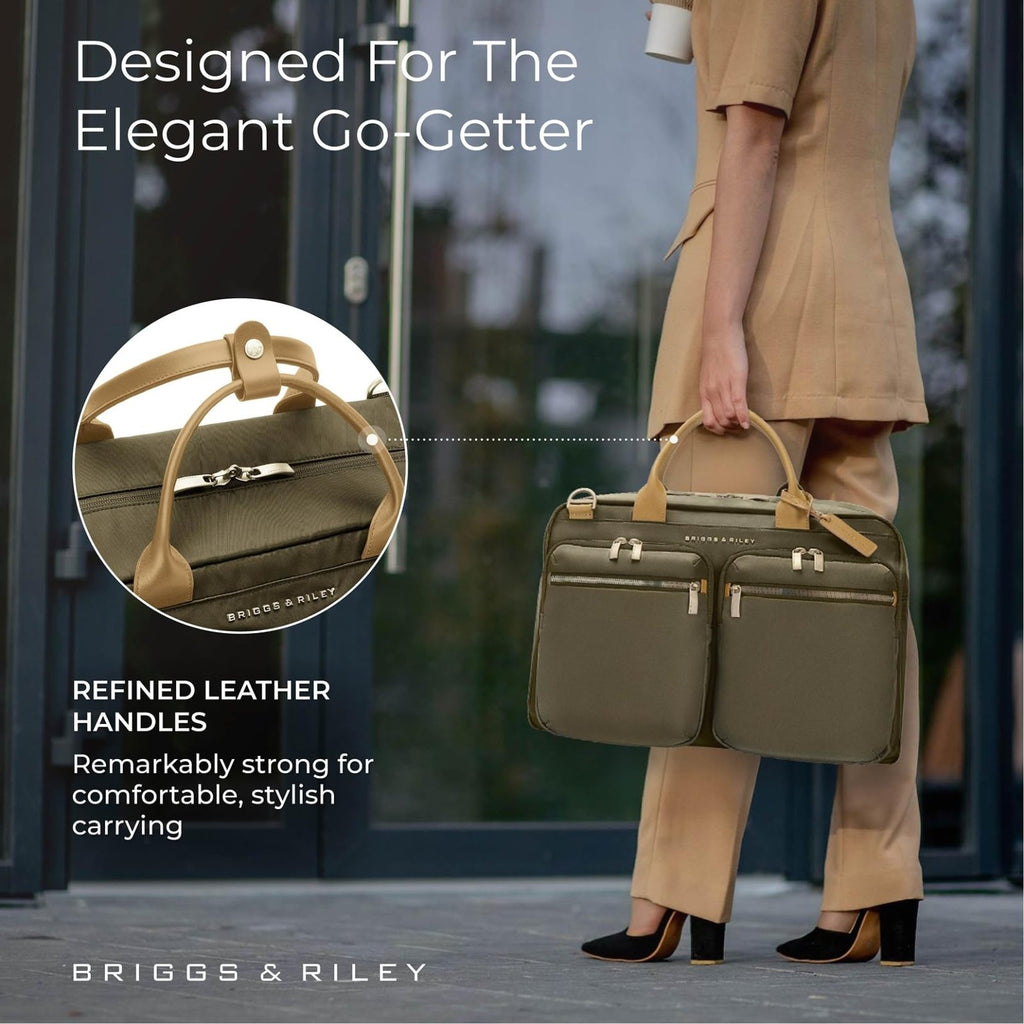 Briggs & Riley Multi-Pocket Cabin Bag - Carry On Luggage for Travel, Softside Bag for Men & Women, Fits in Overhead Bin, Two Slip Pockets, Fits up to 15" Laptop - Rhapsody Collection, Olive